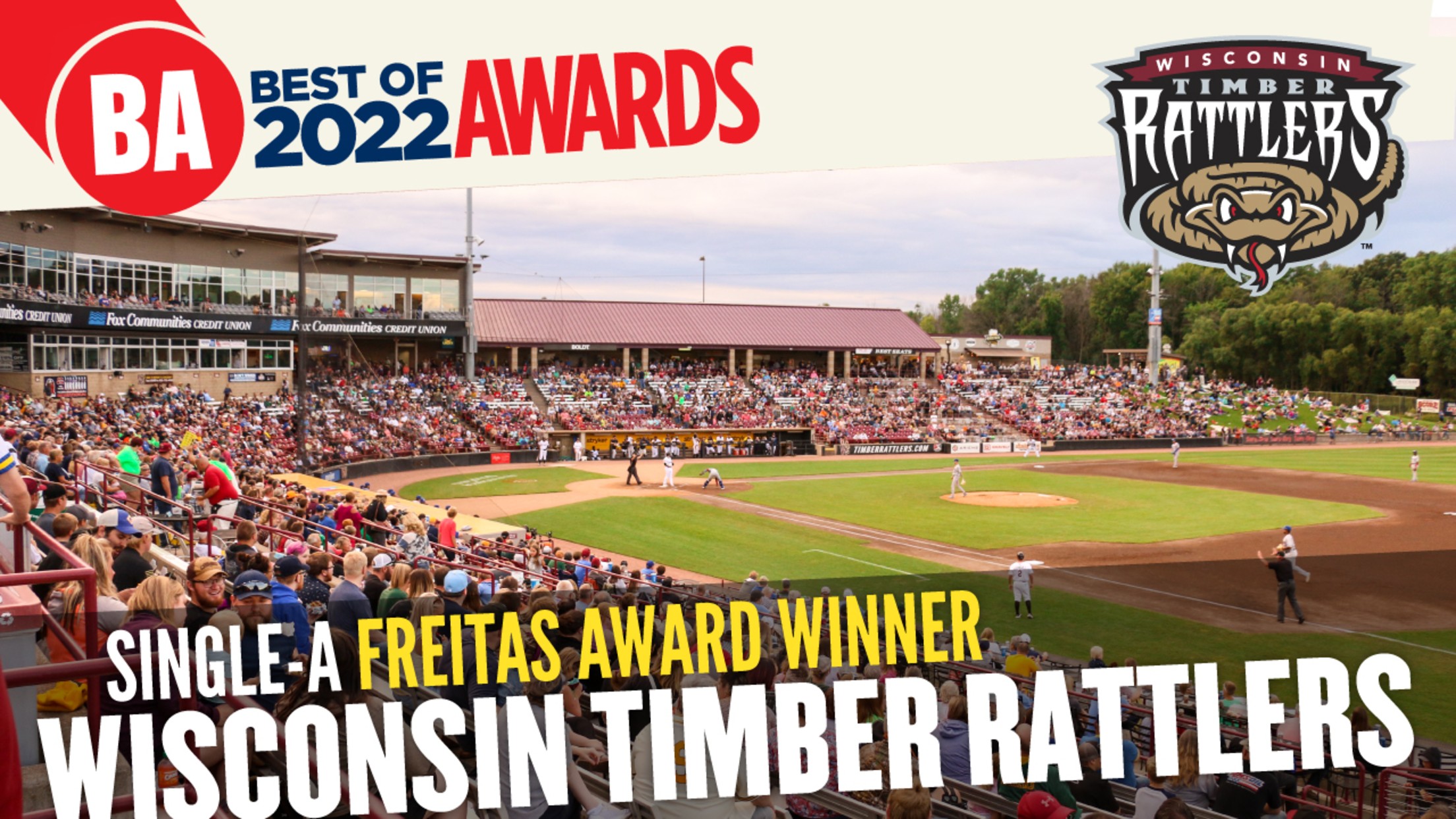 GRAND CHUTE, WI – Baseball America has named the Wisconsin Timber Rattlers as the recipient of the 2022 Bob Freitas Award for the Single-A classification of Minor League Baseball. This is the second time the Timber Rattlers have won the Freitas Award. Wisconsin won the award for the first time
