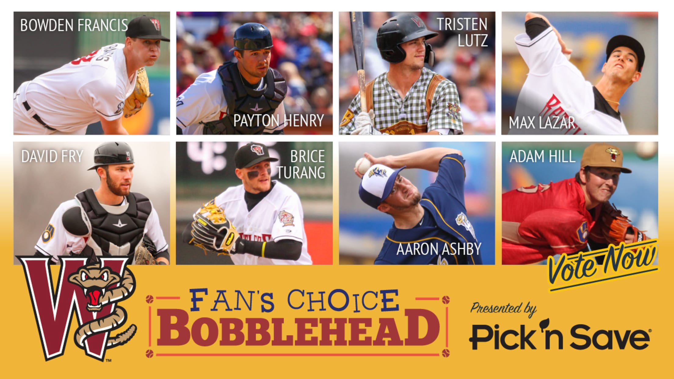 GRAND CHUTE, WI - The Wisconsin Timber Rattlers and Pick-N-Save need your help to select their final bobblehead giveaway of the 2019 season. Check your options and vote for your pick at this link for this year's Fan's Choice Bobblehead.Here are your choices for this season:Aaron Ashby: Timber Rattlers pitcher