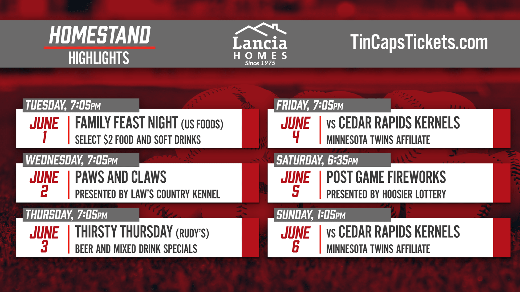 HOMESTAND HIGHLIGHTS: June 1-6