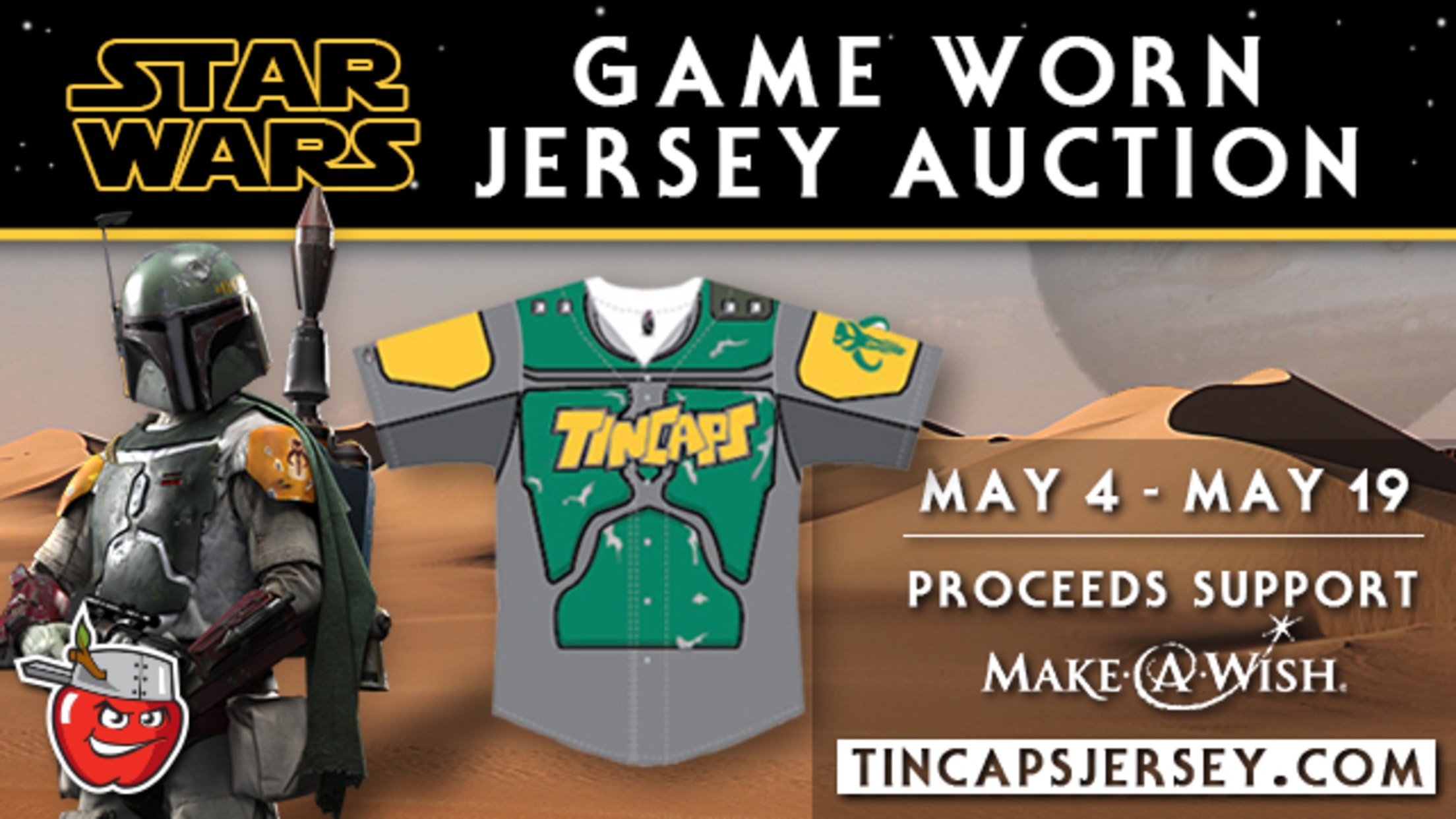 FORT WAYNE, Ind. - The TinCaps will be wearing special Boba Fett-designed jerseys for their annual Star Wars Night presented by Shindigz at Parkview Field on Friday, May 19 (7:05 pm) when they take on the Great Lakes Loons (Los Angeles Dodgers).