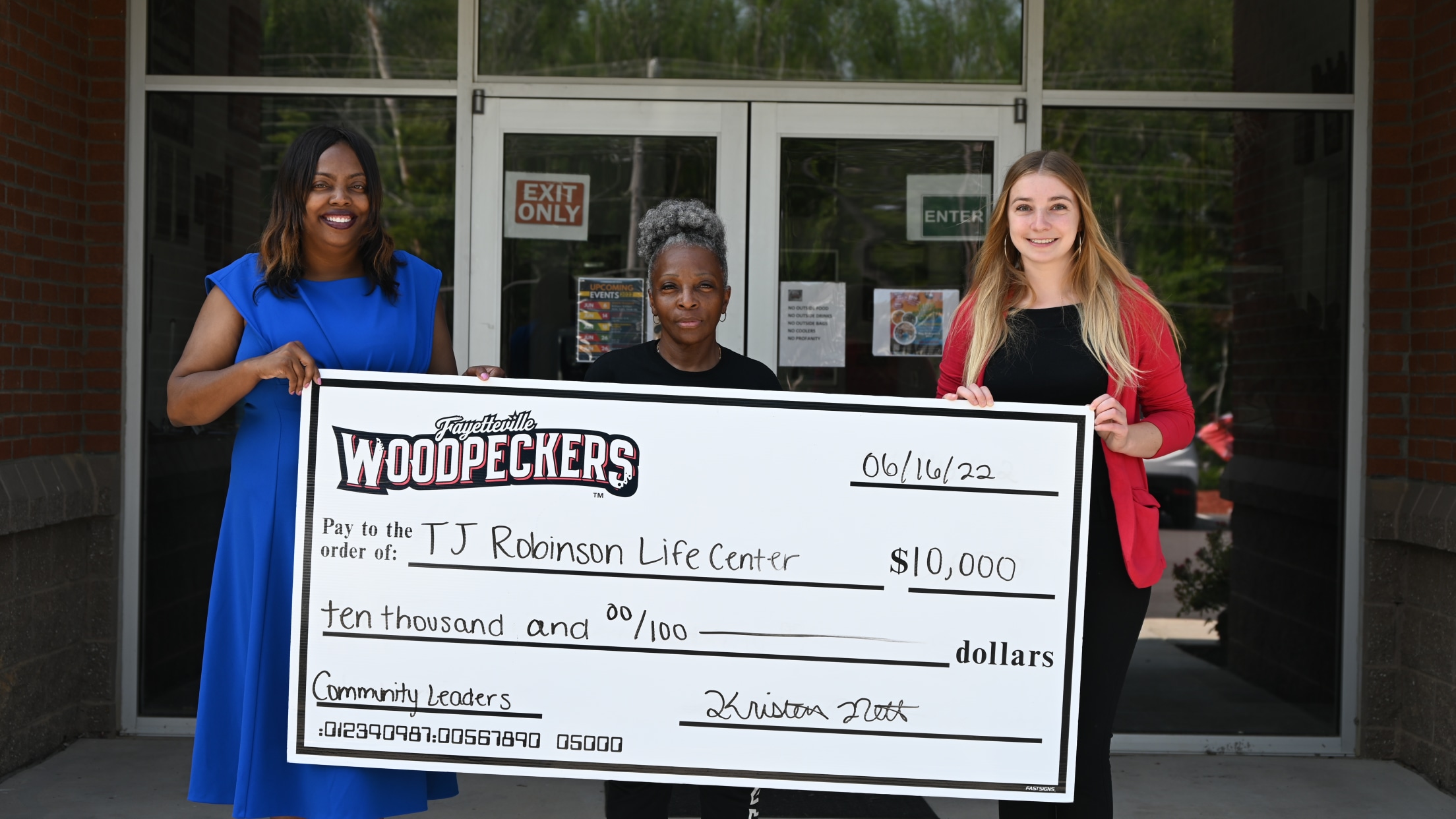 FAYETTEVILLE, N.C. — The Fayetteville Woodpeckers have partnered with the TJ Robinson Life Center to advance youth involvement in baseball. The donation will provide youth with free access to baseball equipment and other opportunities to learn about the sport of baseball. The Woodpeckers Foundation and Community Leaders Program donated $10,000