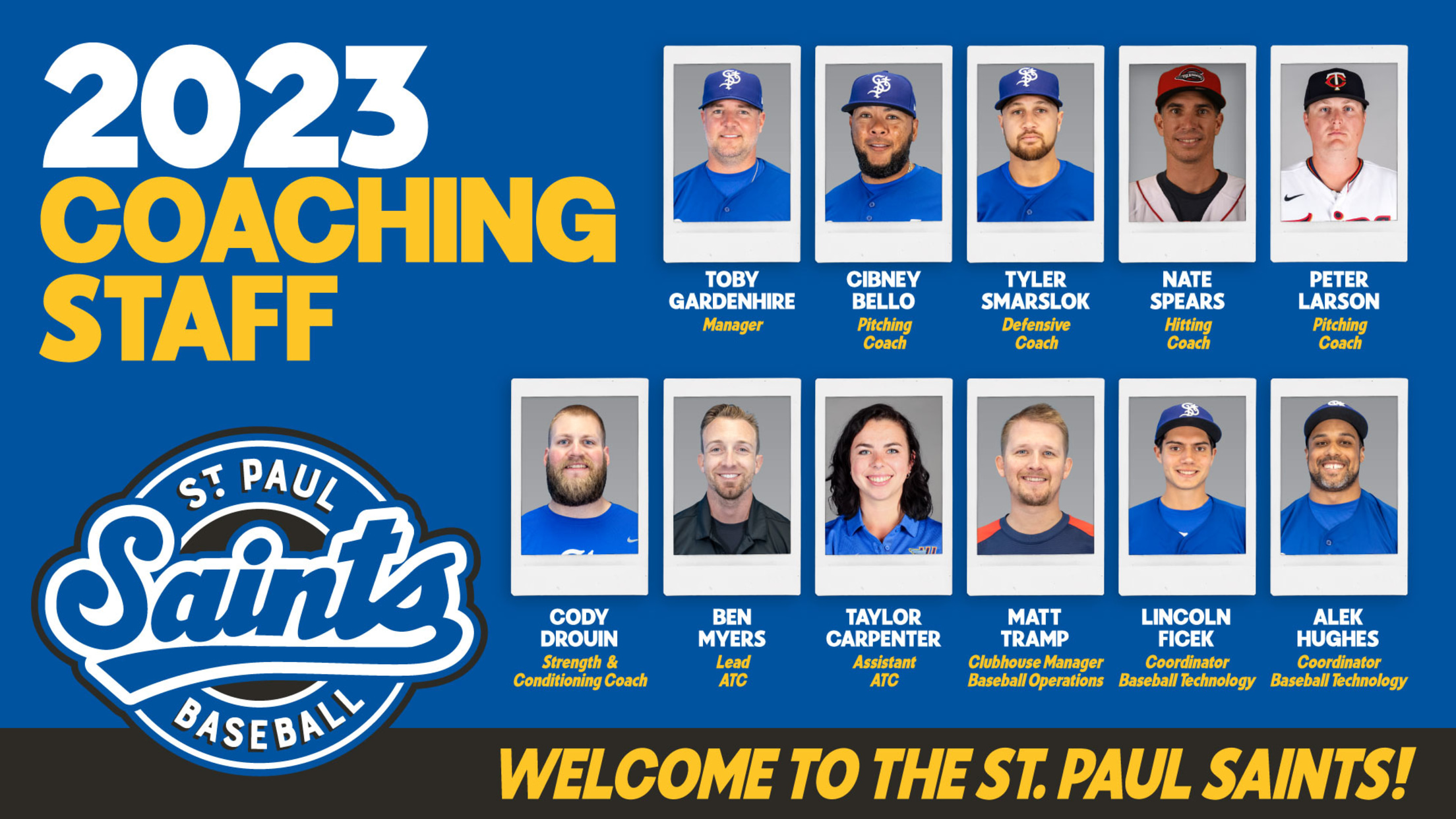 _ST. PAUL, MN _(January 19, 2023) - *The role of a Triple-A manager is a difficult one. The revolving door of players coming through the clubhouse makes one wish they wore “Hello My Name Is” stickers upon arriving for each game. While the players give their all each game, their mind often wanders to the larger prize one step above. It’s a juggling act of getting players ready for the Major Leagues while at the same time trying to win the game you’re managing. Over the first two seasons as the St. Paul Saints manager, *Toby Gardenhire has navigated that path exceptionally well. Gardenhire, the only manager the Saints have known since becoming the Minnesota Twins Triple-A affiliate, will return for his third season at the helm of the Saints. He will be joined by two returning coaches: pitching coach Cibney Bello and Defensive Coach Tyler Smarslok, both entering their third seasons with the Saints. Joining the coaching staff are Pitching Coach Peter Larson from Double-A Wichita, and Hitting Coach Nate Spears, who spent the last six seasons in the Boston Red Sox organization. Rounding out the staff are Strength & Condition Coach Cody Drouin, who returns for his second season, lead Certified Athletic Trainer Ben Myers (second season), Assistant Certified Athletic Trainer Taylor Carpenter (first season), AAA Clubhouse Manager/Assistant, Baseball Operations Matt Tramp (third season), and Coordinator’s, Baseball Technology Lincoln Ficek and Alek Hughes, both returning for their second seasons.