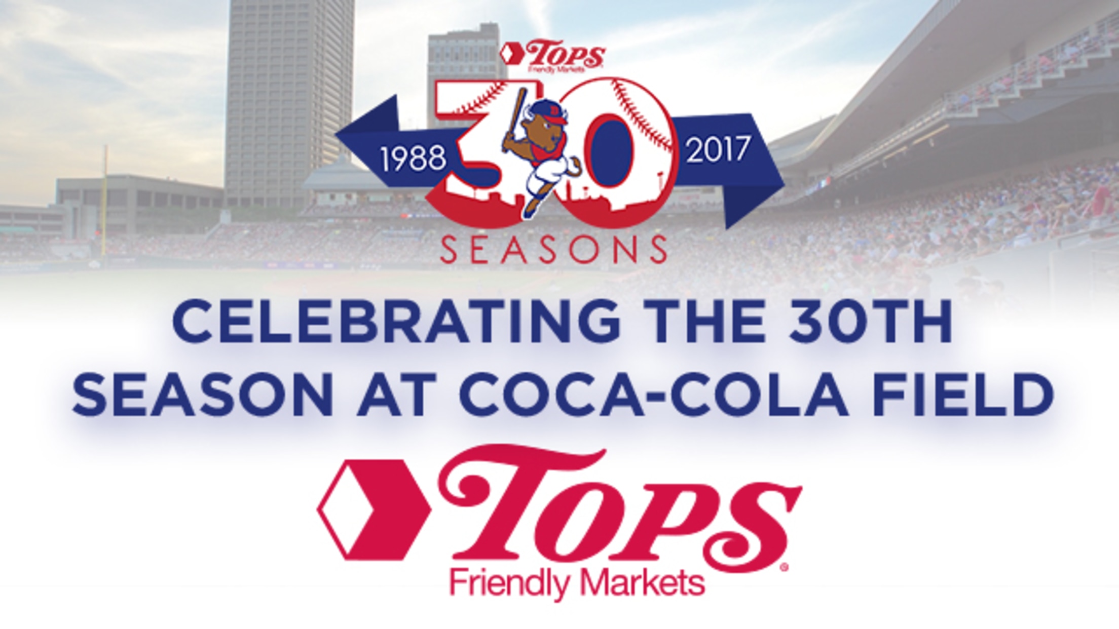 As the Buffalo Bisons continue to celebrate three decades of great baseball action and family entertainment in downtown Buffalo, the team today announced that Tops Friendly Markets has been named the presenting sponsor of the 30th Season Celebration of Coca-Cola Field.