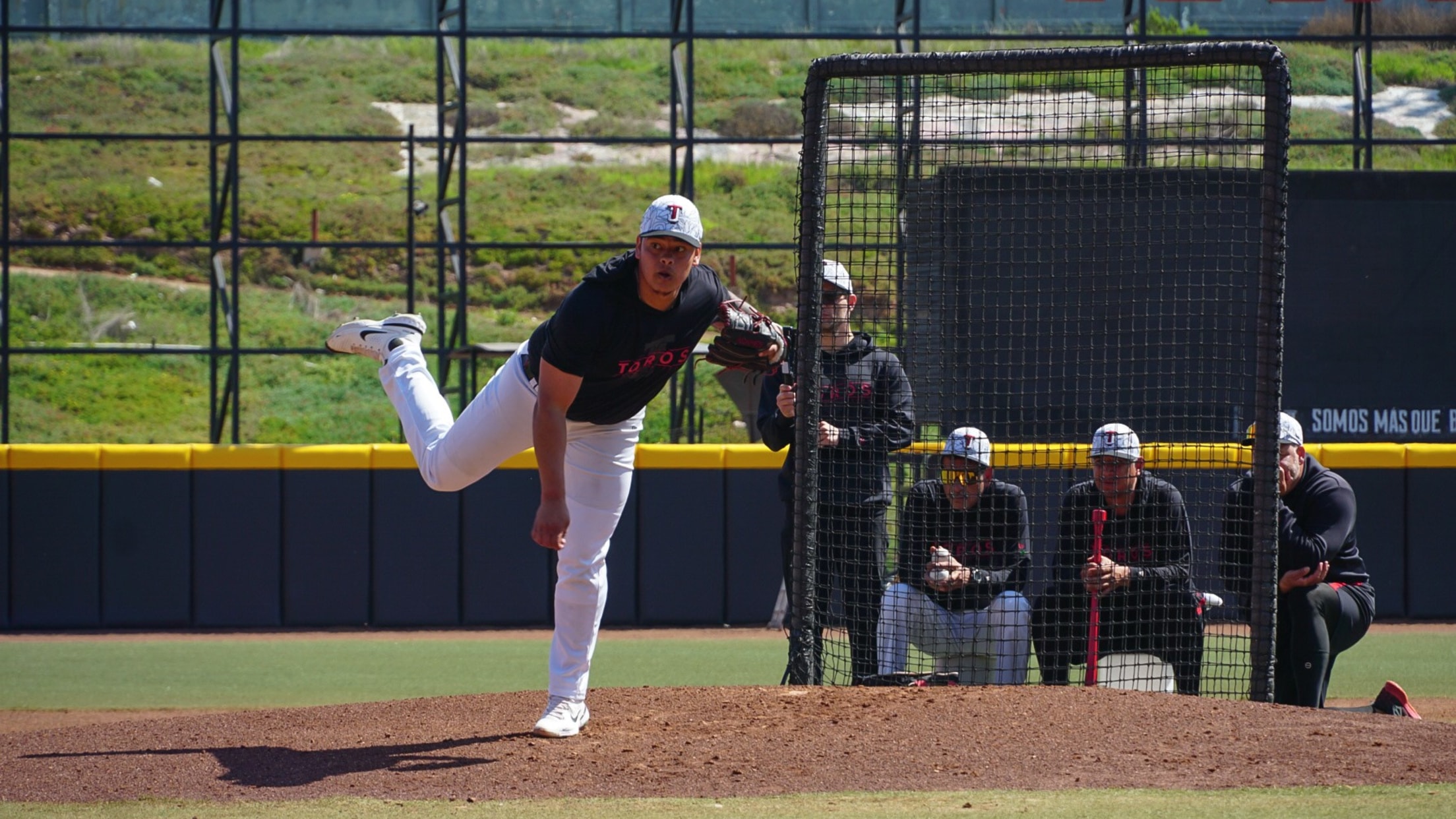 Una de las caras nuevas en el Spring Training astado y que, por cierto, participó desde la lomita en la práctica de bateo en vivo, es David Gutiérrez, quien este 2024 busca un lugar en el bullpen de los Toros de Tijuana y para eso reportó desde la primera semana, en el Early Camp.