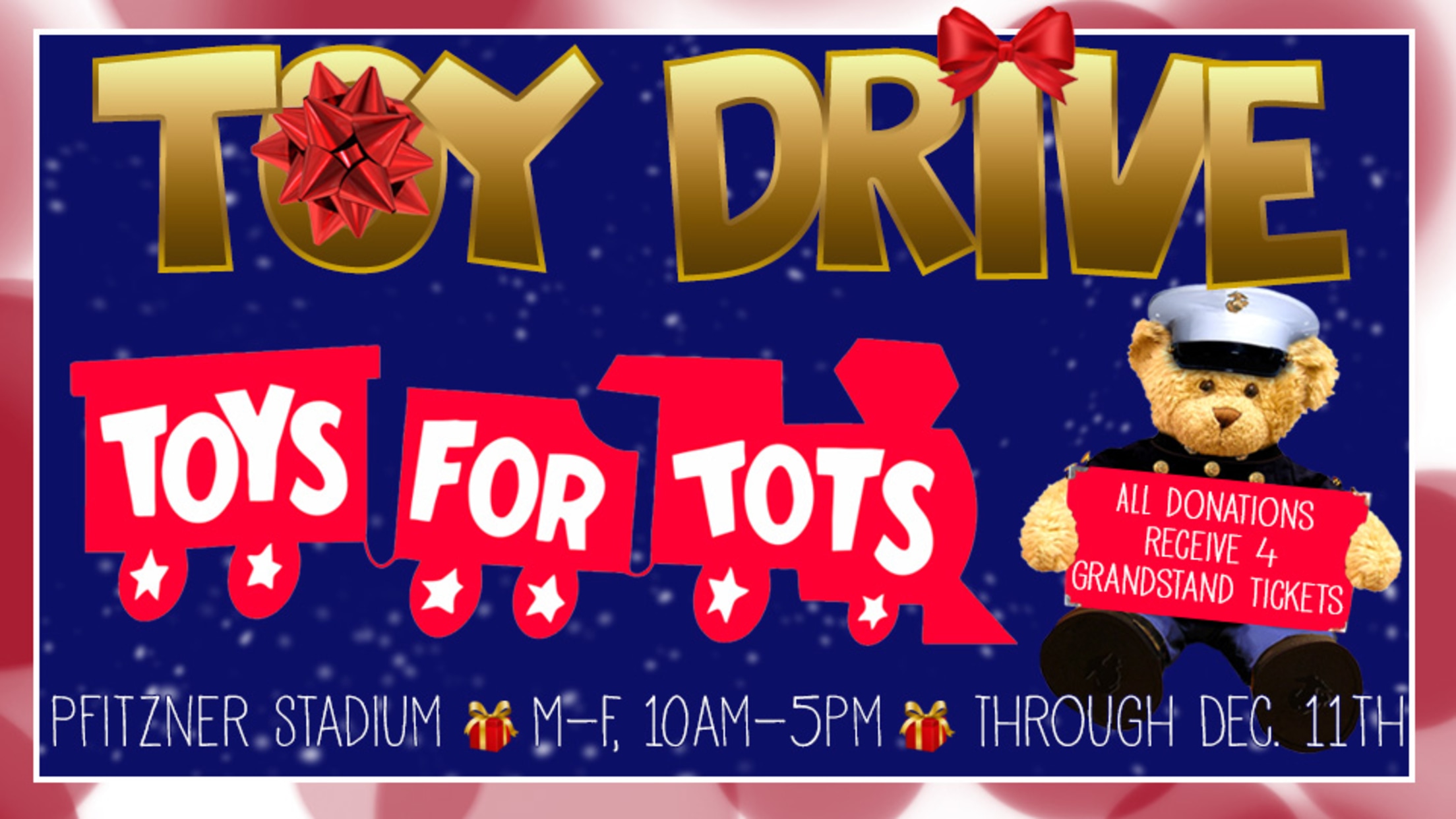 "Thank you in advance to the terrific Red, White, & Blue fan base for your support towards the donation of toys and other gifts, which will reach our community's disadvantaged children following the Potomac Nationals' Toys for Tots holiday drive."