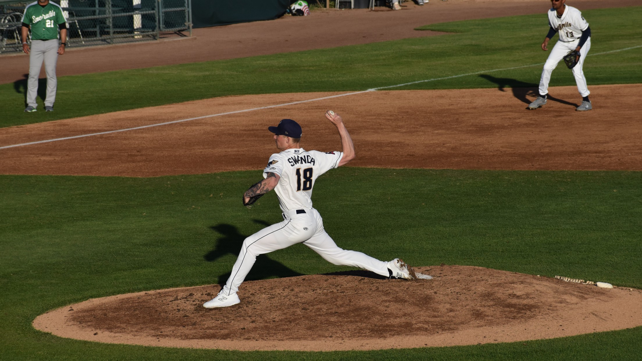 Swanda (3-0) went 6.2 innings, giving up only one run on a 7th inning solo home run by Eugene LF Jared Dupere. Swanda gave up just four hits, including the homer, and struck out five while walking only two in his third straight win.