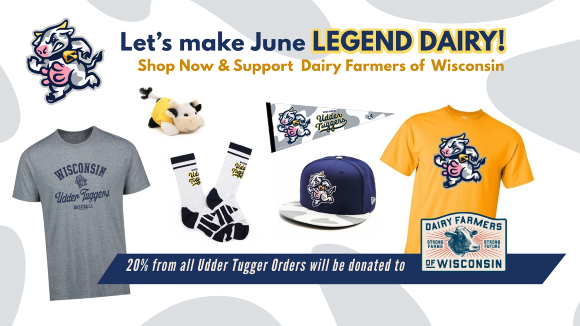 The Timber Rattlers will donate 20% of the purchase price of all Udder Tuggers gear for the rest of June to Dairy Farmers of Wisconsin to help support a pair of local charities: Hunger Task Force Free & Local and Wisconsin Food & Farm Support Fund.
