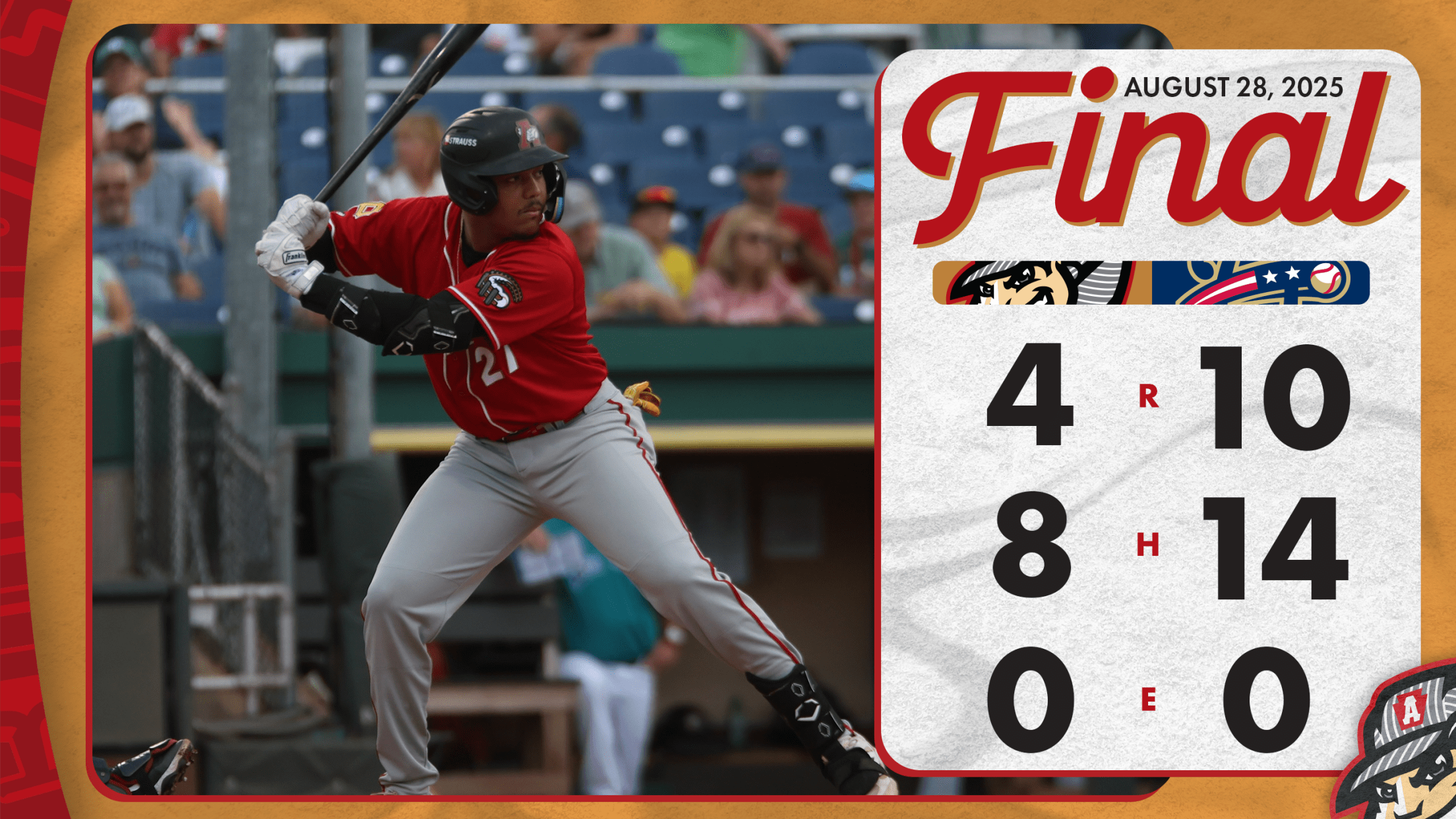 Valdez smashed his homer in the fifth inning, driving in P.J. Hilson to make it a 6-4 game. Valdez finished his night 3-for-4 with a double, a homer and two runs scored. Harrisburg put the game away with two runs in the sixth, and single runs in the seventh and eighth.