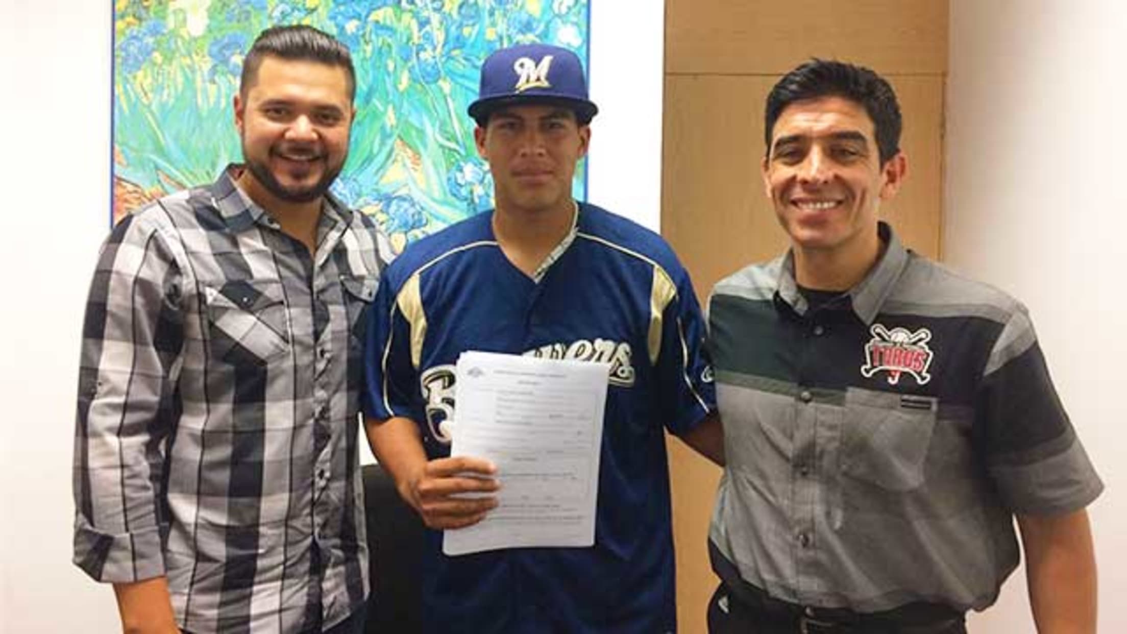 En la firma estuvieron presentes Guillermo Armenta, director del Programa de Desarrollo de Toros de Tijuana y Martín Arvizu, scout de Cerveceros de Milwaukee en México.