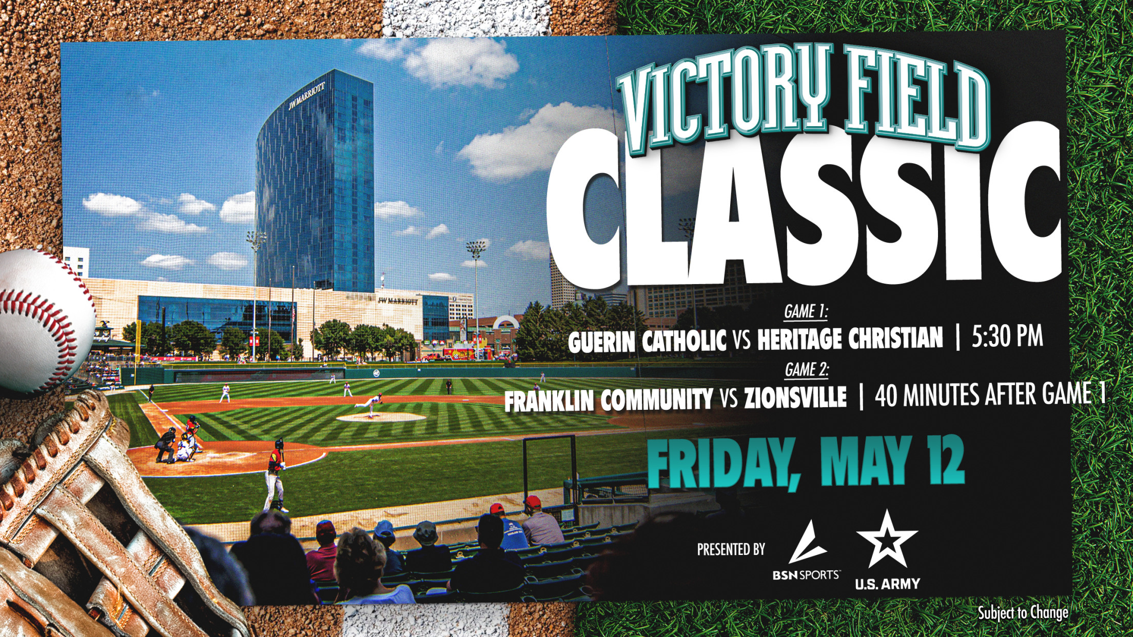 INDIANAPOLIS – Four Indiana high school baseball teams will compete in the 14th edition of the Victory Field Classic presented by BSN Sports and U.S. Army Recruiting on Friday, May 12 at Victory Field. The 5:30 PM contest pairs Guerin Catholic (3A No. 4 by Prep Baseball Report) vs. Heritage