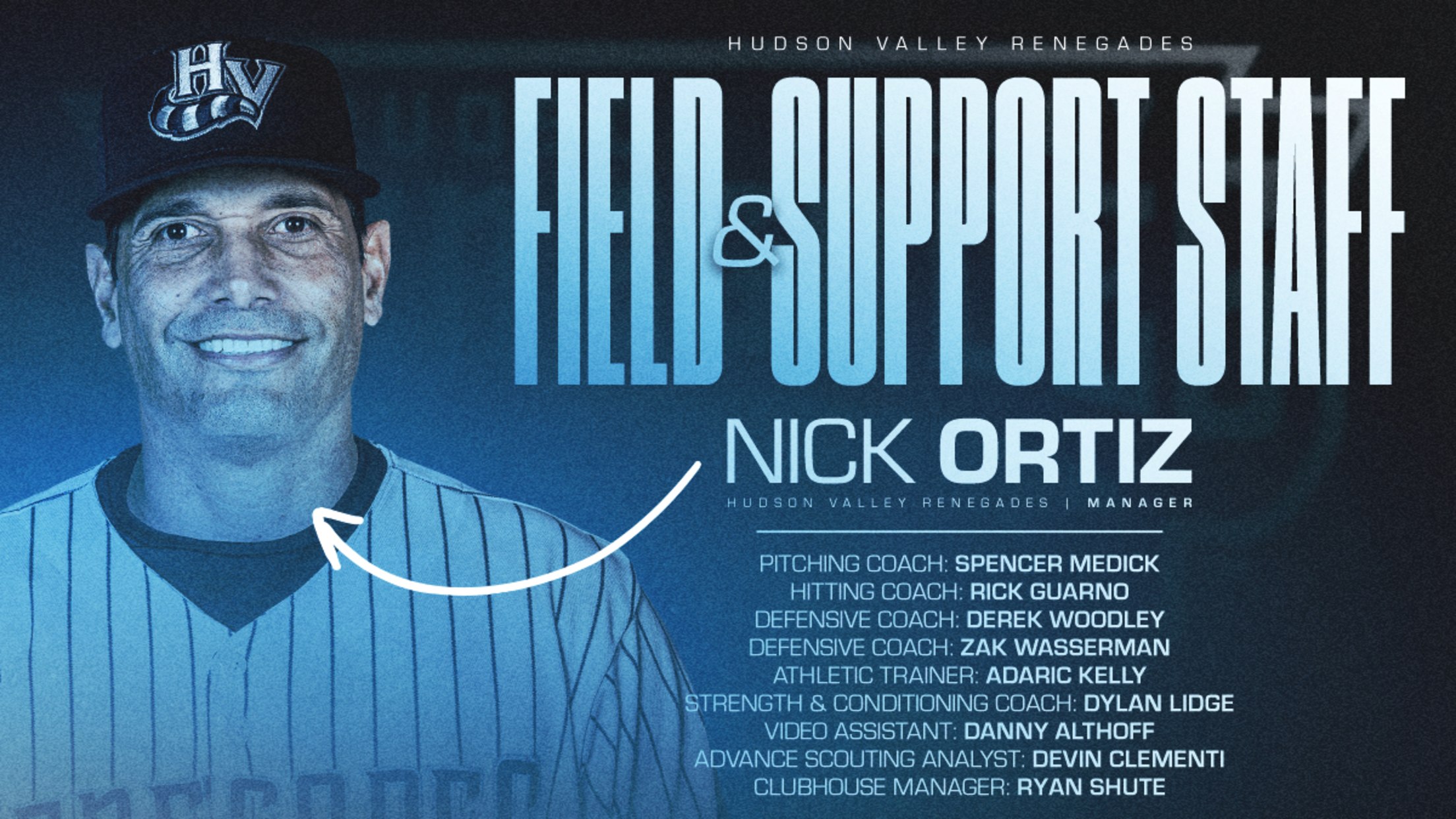 Wappingers Falls, N.Y. (Jan. 26, 2024) – The New York Yankees announced their minor league field and support staffs for the 2024 season on Friday. Nick Ortiz will take over as the manager of the Hudson Valley Renegades, the Yankees High-A affiliate.