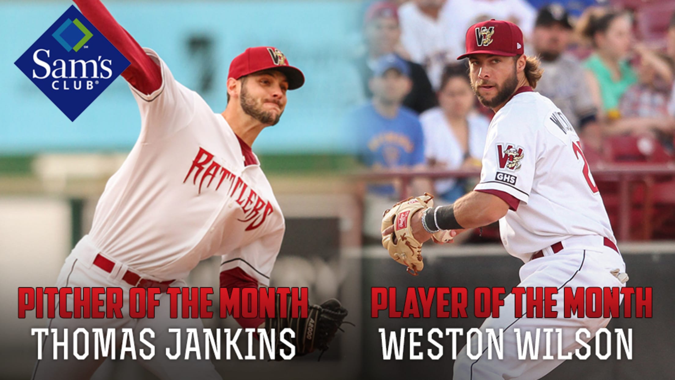 GRAND CHUTE, WI - The Wisconsin Timber Rattlers have announced Weston Wilson and Thomas Jankins as the July recipients of the Sam's Club Player of the Month and Pitcher of the Month.Wilson, who was promoted to the Carolina Mudcats on Thursday, hit .305 with nine doubles, a triple, and four