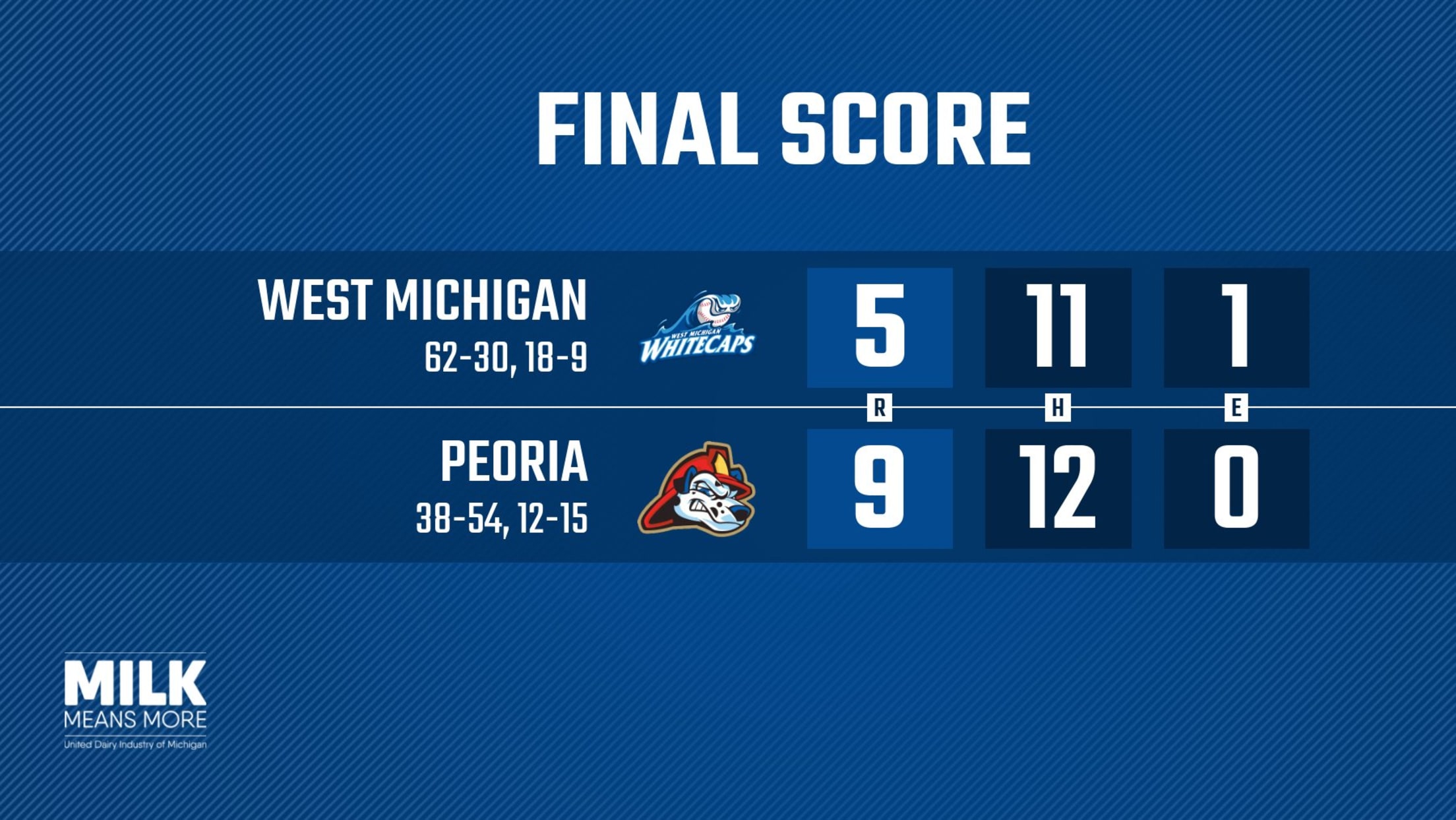 PEORIA, IL – The West Michigan Whitecaps took a big early lead but were unable to hold on as part of a 9-5 loss to the Peoria Chiefs on Thursday night at Dozer Park.