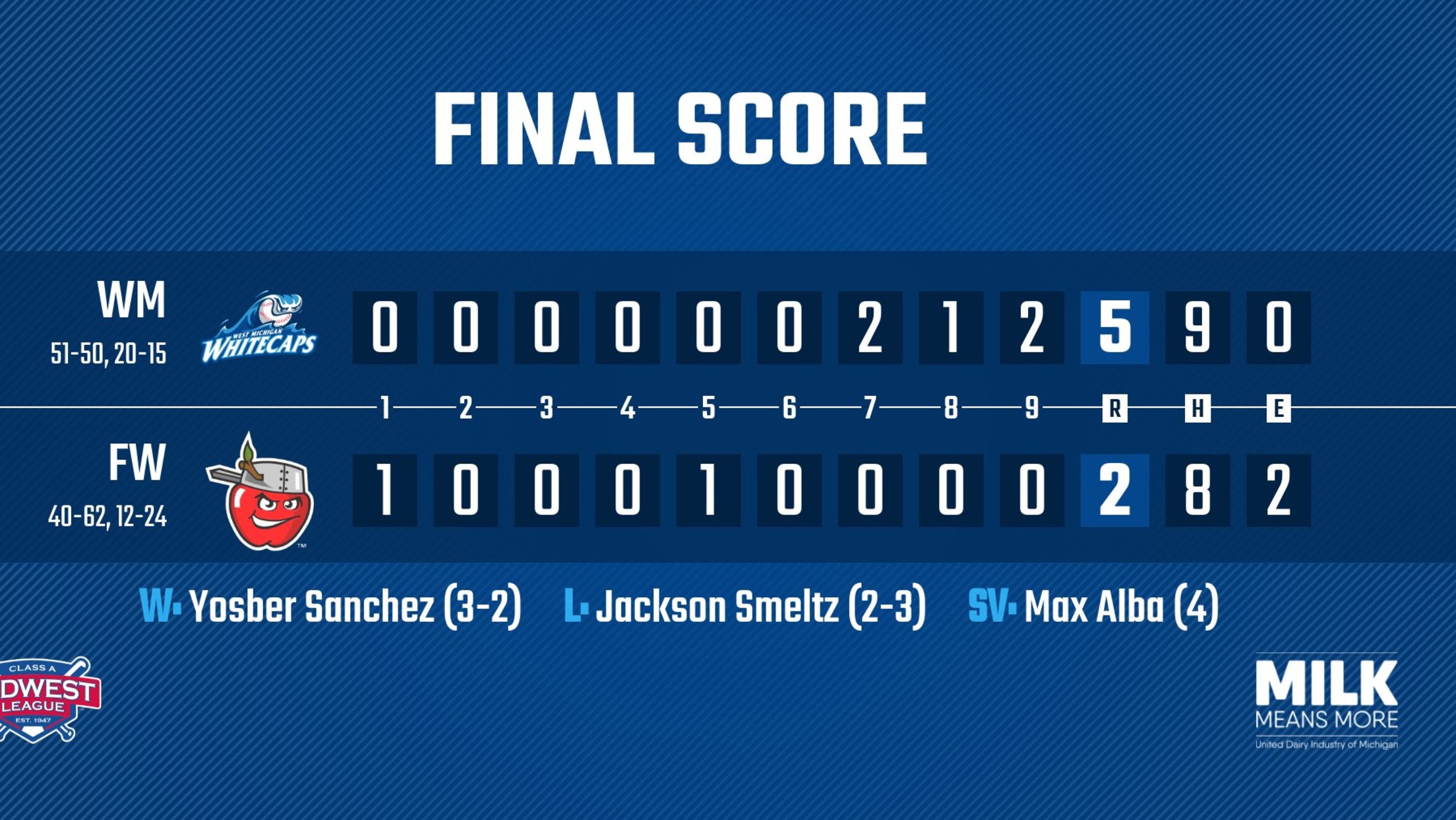 FORT WAYNE, IN — The West Michigan Whitecaps rallied from a two-run deficit in the final three innings to finish an impressive road trip with a 5-2 victory over the Fort Wayne TinCaps in front of 7,573 fans at Parkview Field on Sunday.