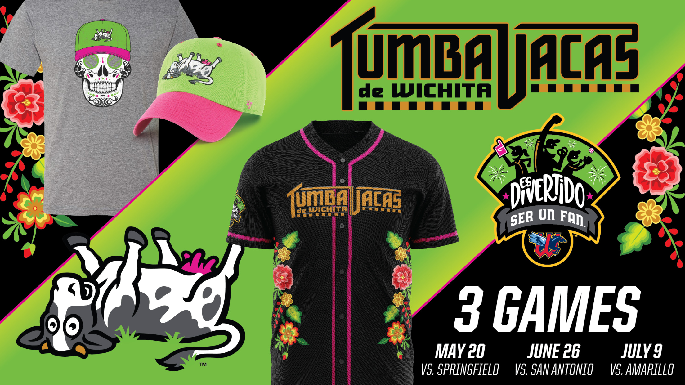 "Tumba Vacas", traducido libremente como "Cow Tippers", es un guiño lúdico a la rica historia agrícola de Wichita. El equipo usará camisetas especiales en las tres fechas del partido de Tumba Vacas, celebrando los trajes tradicionales de charro/as. Las camisetas tendrán un rico color dorado que retrata las deslumbrantes habilidades de cuerda, los vibrantes colores rosa y verde, y las flores multicolores que representan la única semilla que los antepasados plantaron para construir las familias y tradiciones que existen hoy en día.
