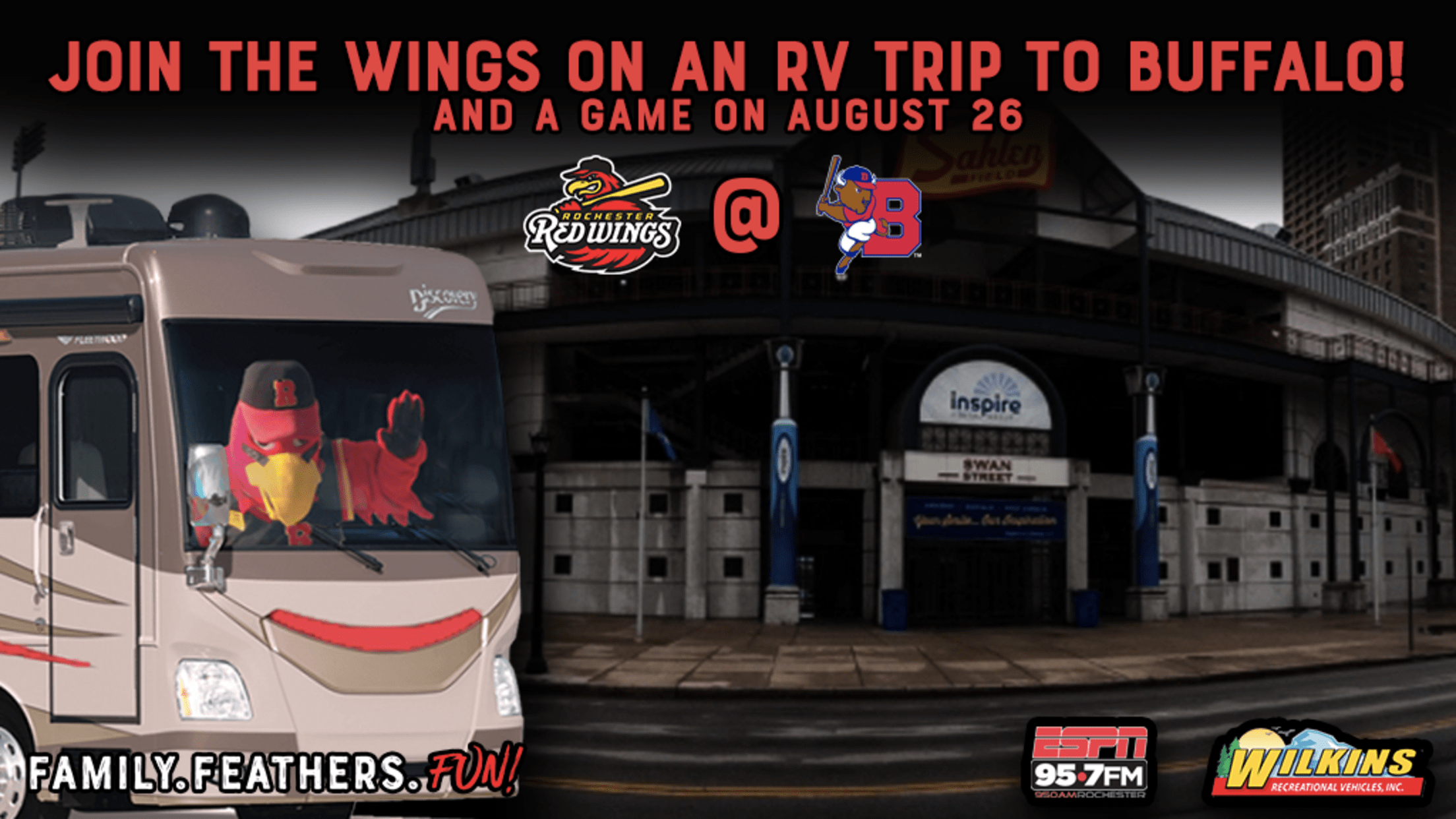 One grand prize winner and six guests will ride in a Wilkins RV to see the Red Wings play in Buffalo Mon. Aug. 26, 7:05 pm game. This includes transportation to and from Buffalo, free parking at Frontier Field while in Buffalo, game tickets, snacks on the way to Buffalo, and a pre-game VIP meet and greet with Red Wings players.