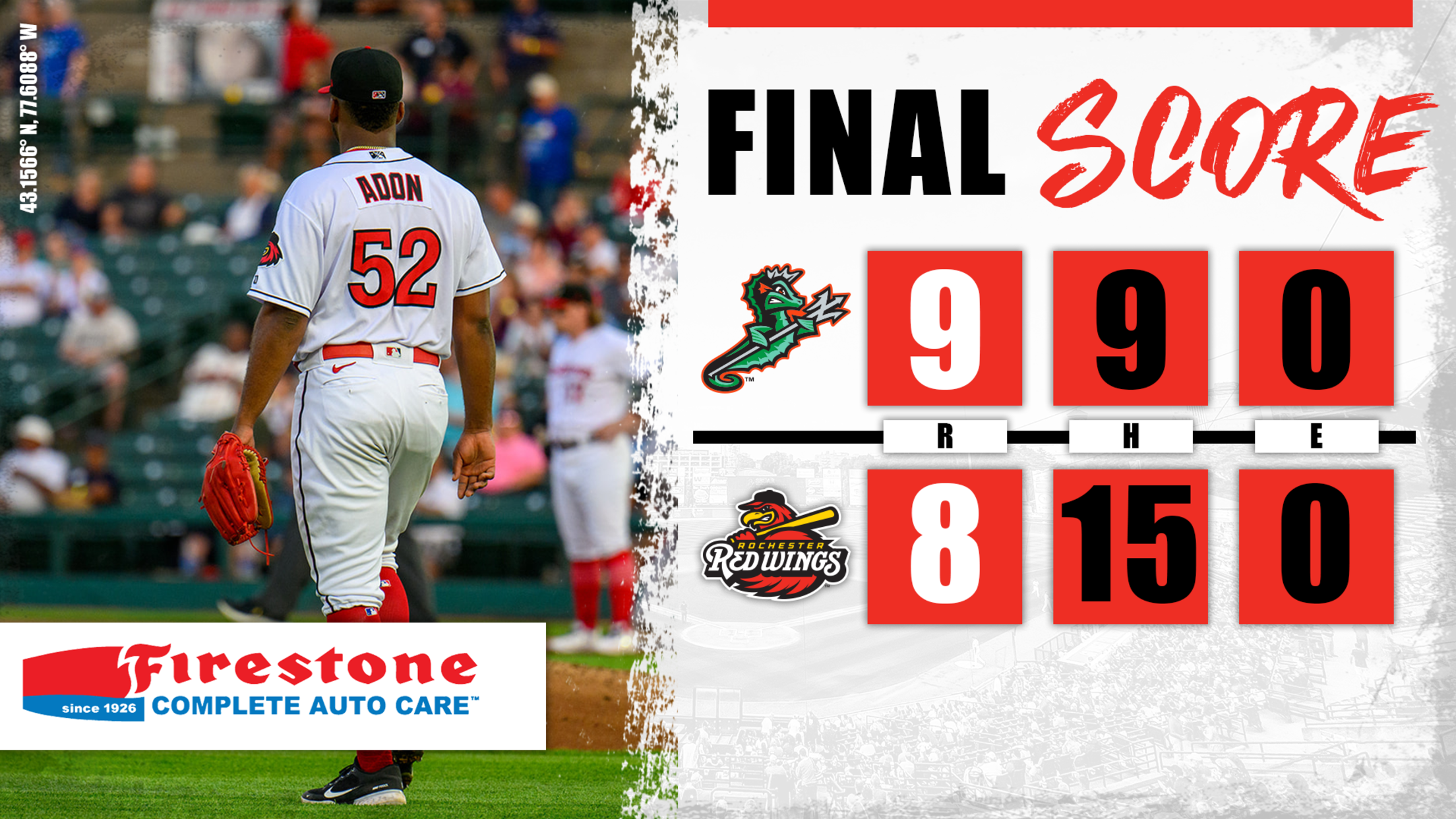 The Rochester Red Wings fell just short Wednesday night against Norfolk, losing 9-8 to extend their losing streak to a franchise-record 19 straight games. RHP Joan Adon toed the rubber for the Wings, allowing six runs on five hits through three innings of action. Norfolk tallied three runs in the