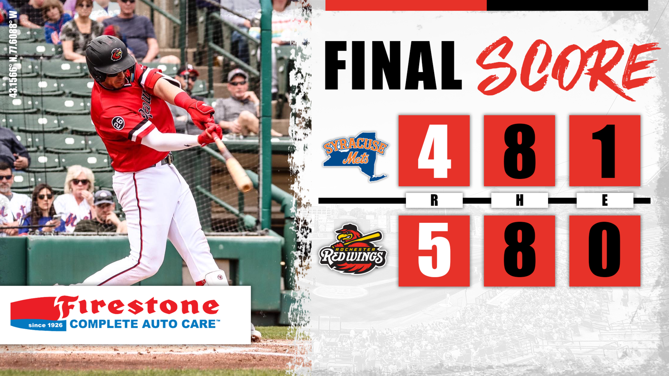 The Red Wings returned to their winning ways this evening, defeating Syracuse 5-4 in the first game of this road series. Wings designated hitter Joey Meneses shined, hitting the team’s first grand slam of the year in the third to put the Wings up 4-0. He tallied a run and
