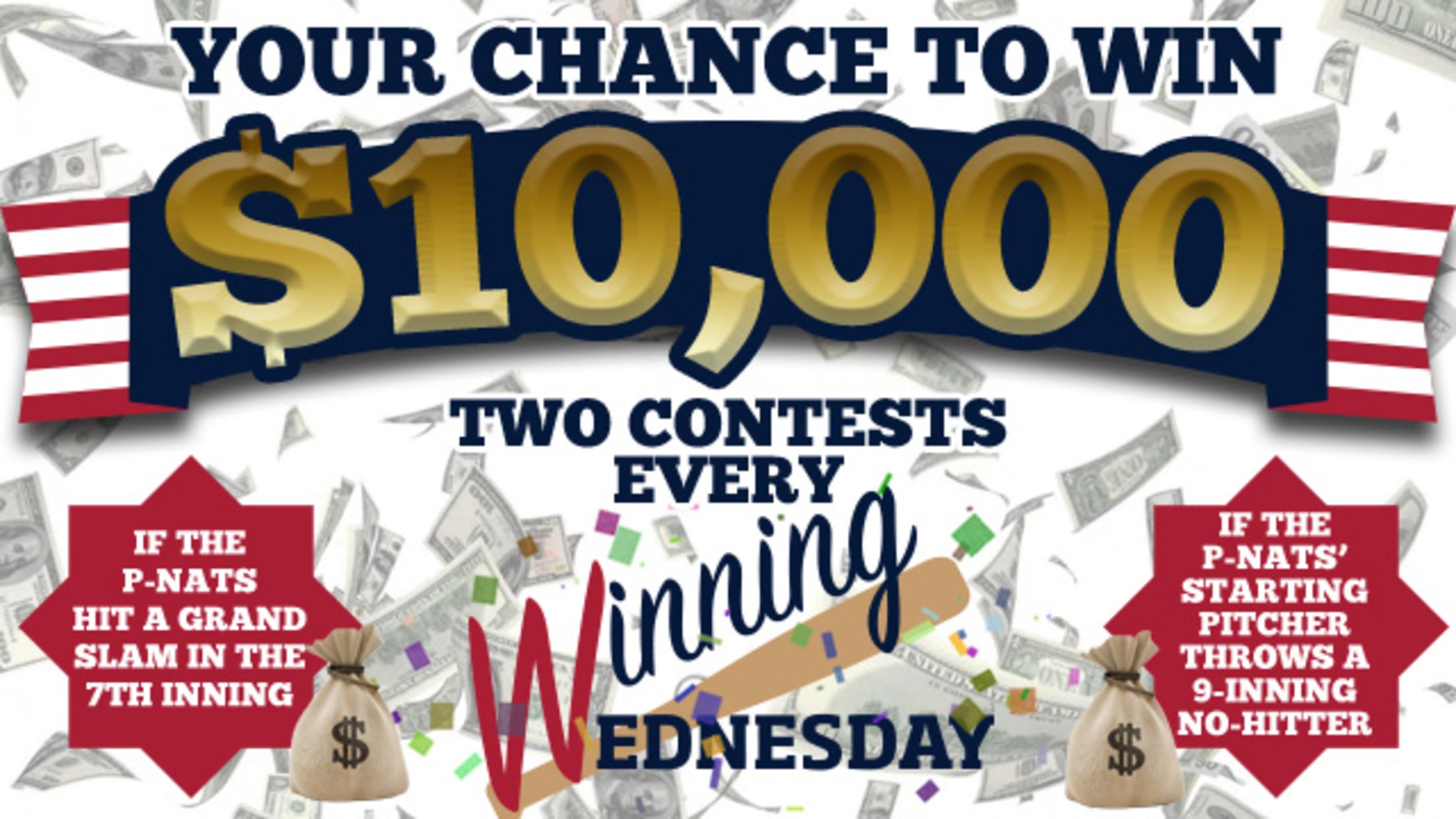 If any P-Nats player hits a grand slam in the 7th inning of any remaining Winning Wednesday game, one P-Nats fan will walk away with $10,000.