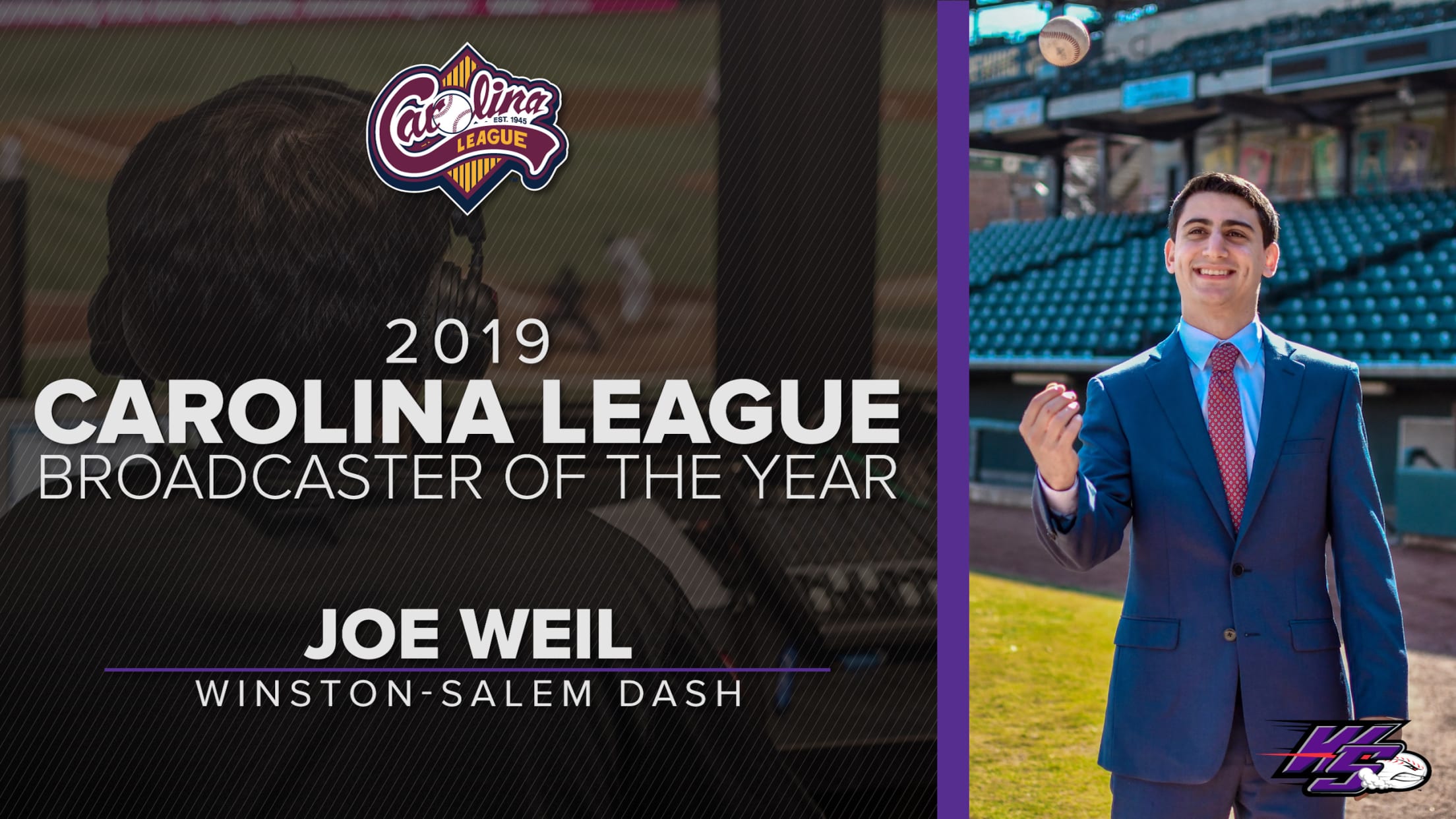 WINSTON-SALEM, N.C. (Oct. 8, 2019) - Joe Weil, the play-by-play broadcaster for the Winston-Salem Dash, has earned the Carolina League's eighth-annual Broadcaster of the Year award. Weil received the most votes among the league's lead broadcasters and broadcast assistants.