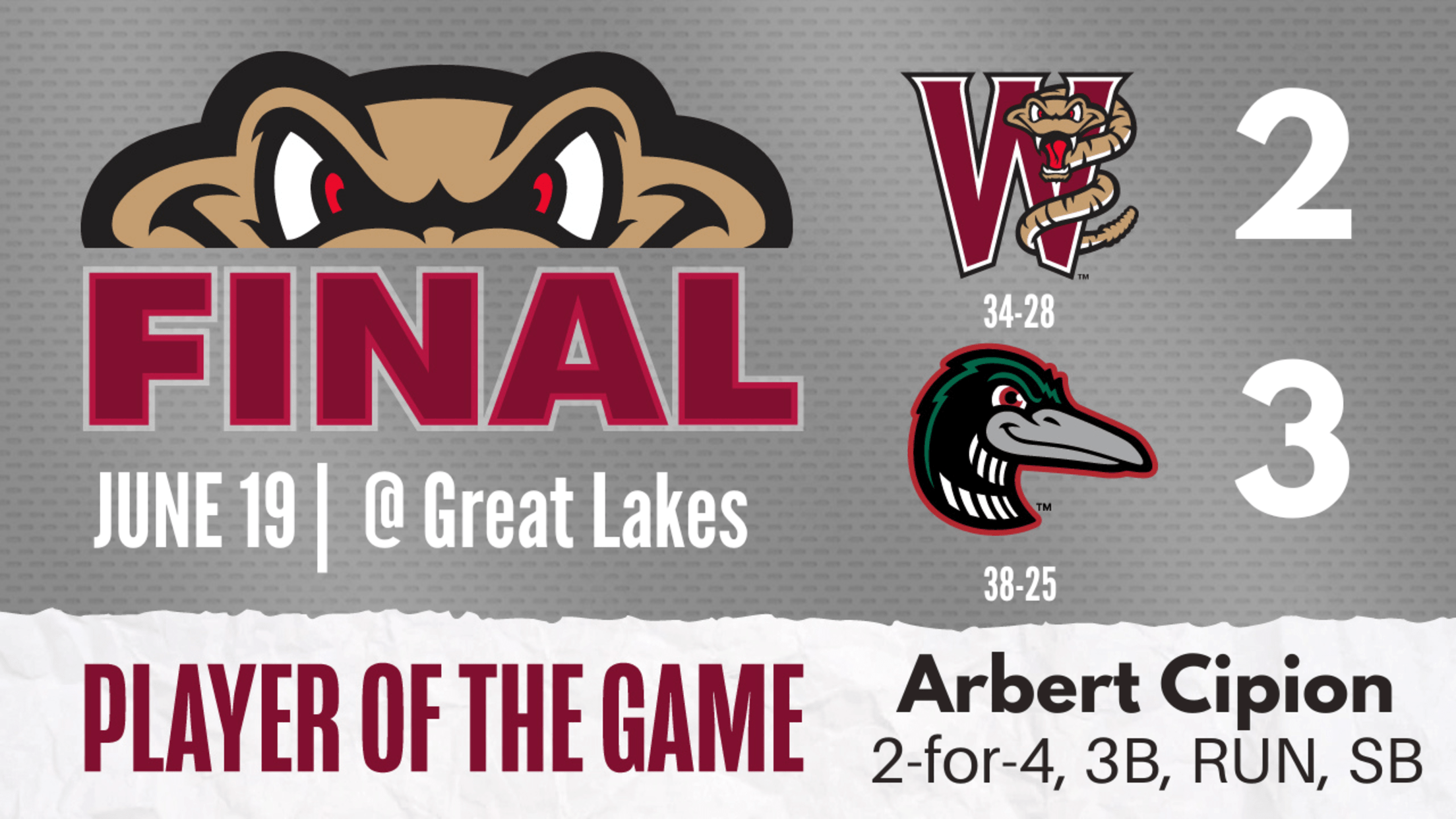 MIDLAND, MI – The Wisconsin Timber Rattlers wrapped up an eleven-game road trip with a 3-2 loss to the surging Great Lakes Loons on Sunday at Dow Diamond. The Timber Rattlers went 3-8 on the two-week trip to Beloit and Great Lakes. The Loons have won ten of their last