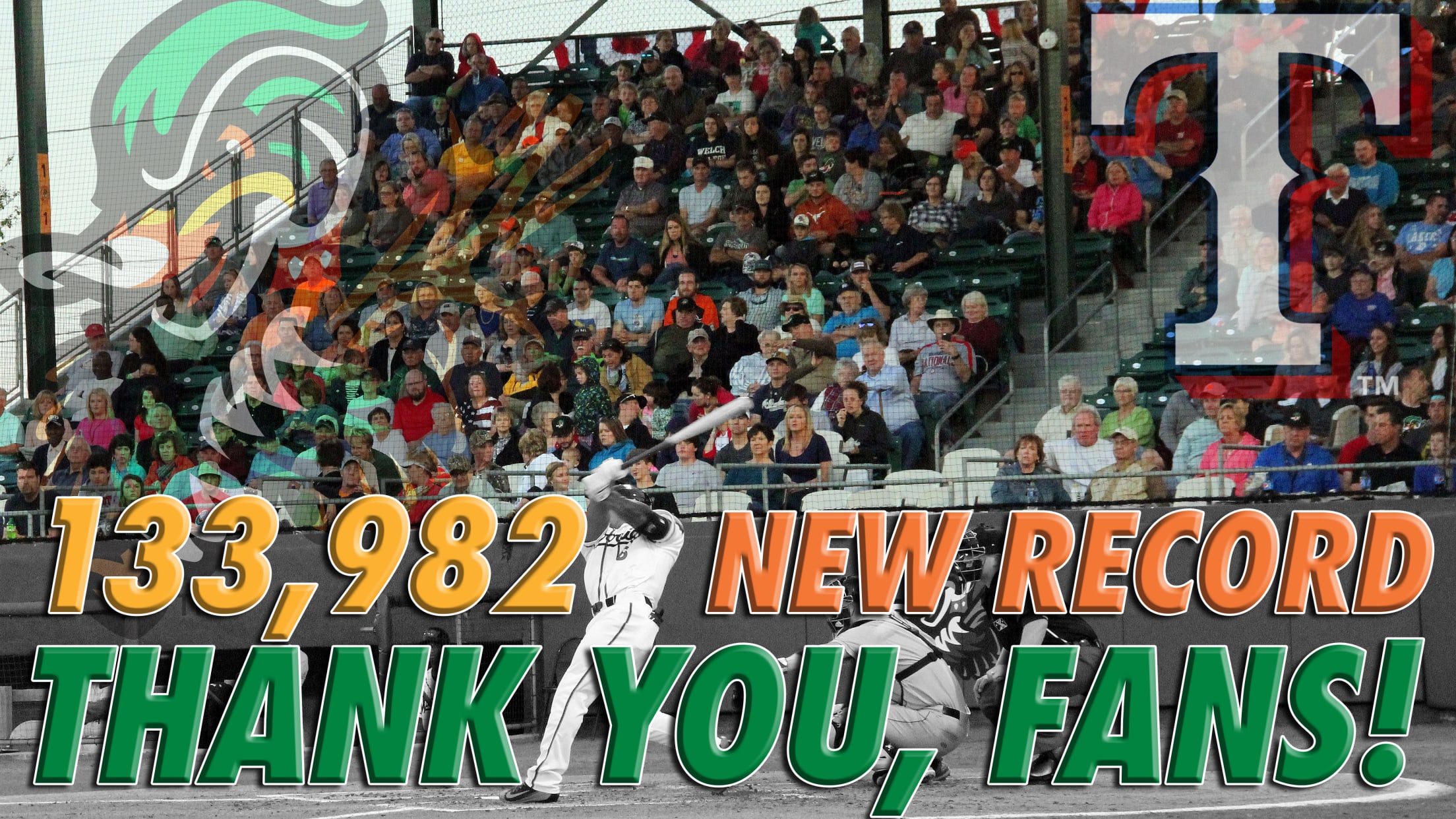 Friday night's attendance of 1,938 sets the record at 133, 982 and it will continue to climb with five more home games scheduled at Grainger Stadium.