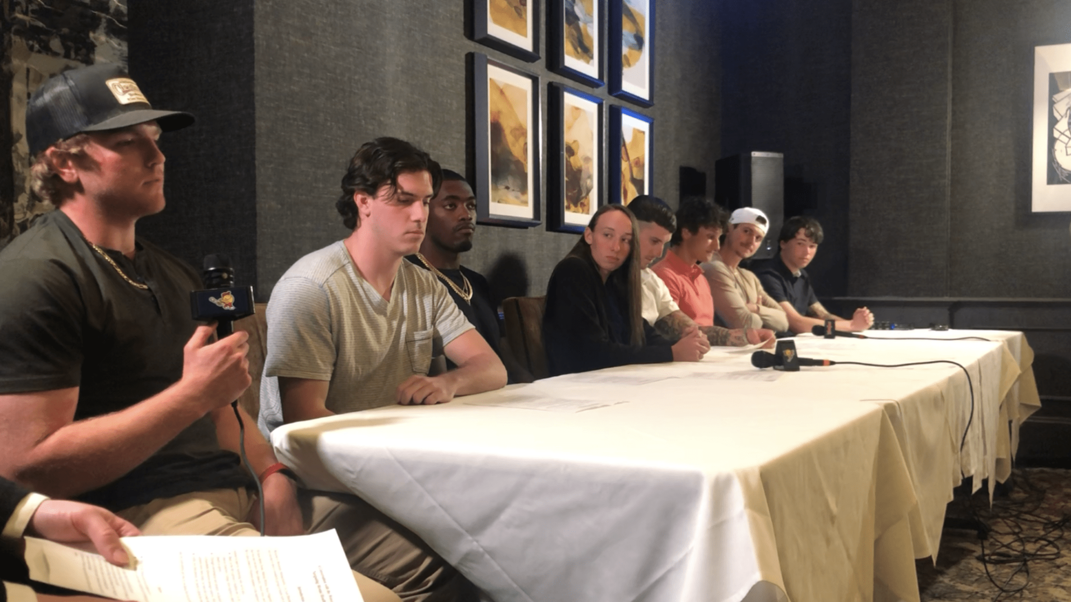 From the WooSox; Durbin Feltman, Marcus Wilson, Jarren Duran and Ryan Fitzgerald gathered at Worcester’s Ruth’s Chris Steak House. Student-athletes from Emerson College included Trevor Arico from the Men’s Basketball team, Sam Zannotti from the Women’s Softball team, Ezra Charles and Nick Favazzo from the Men’s Baseball team. Moderator Evan Sharrard, a sophomore in Emerson’s sports communication concentration, fielded questions and guided conversation.