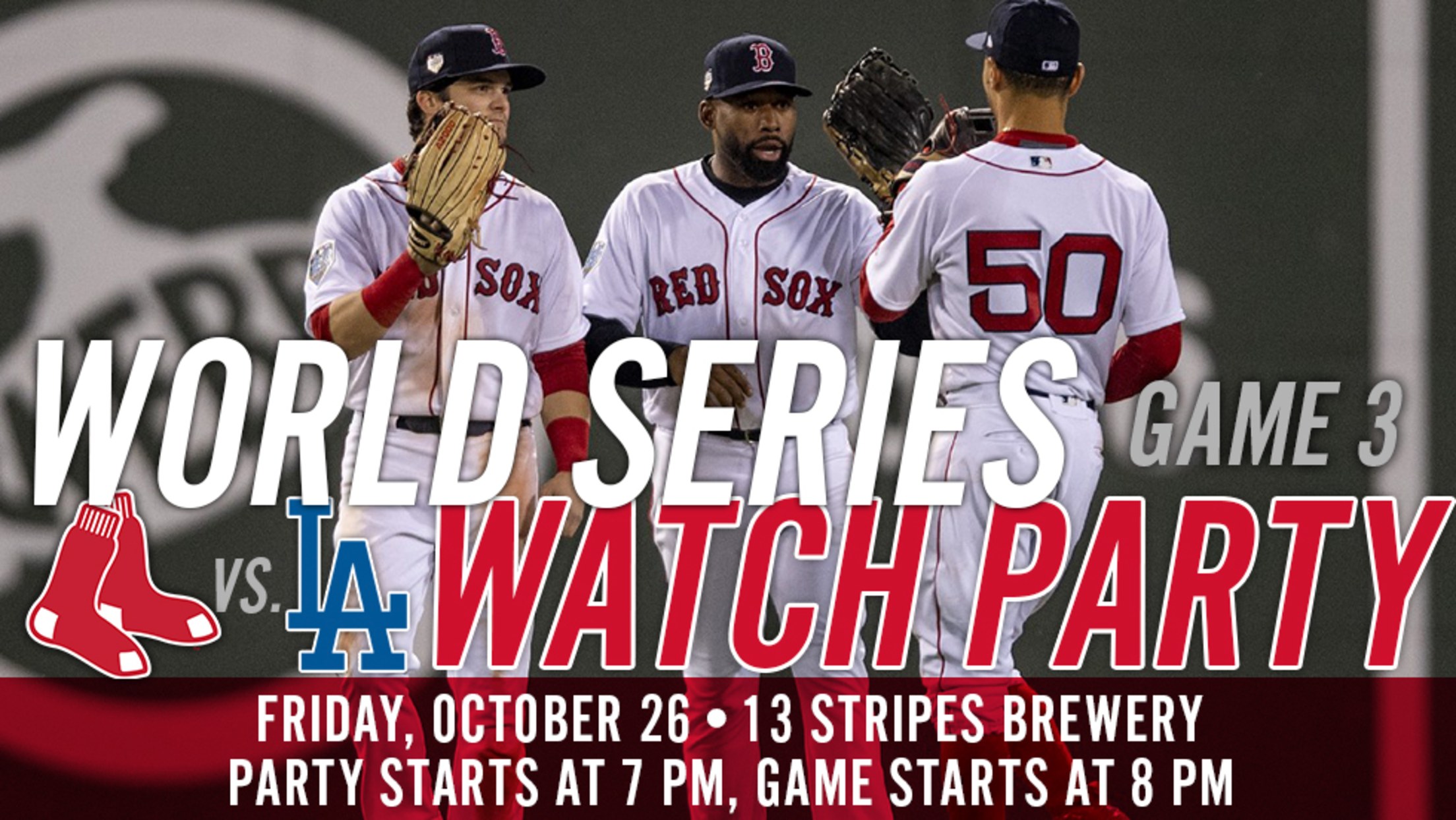 The Boston Red Sox have raced out to a 2-0 lead over the Los Angeles Dodgers in the World Series, and the Drive invite you to join us for a special Game 3 Watch Party on Friday night at 13 Stripes Brewery!The watch party will begin at 7:00 PM, and