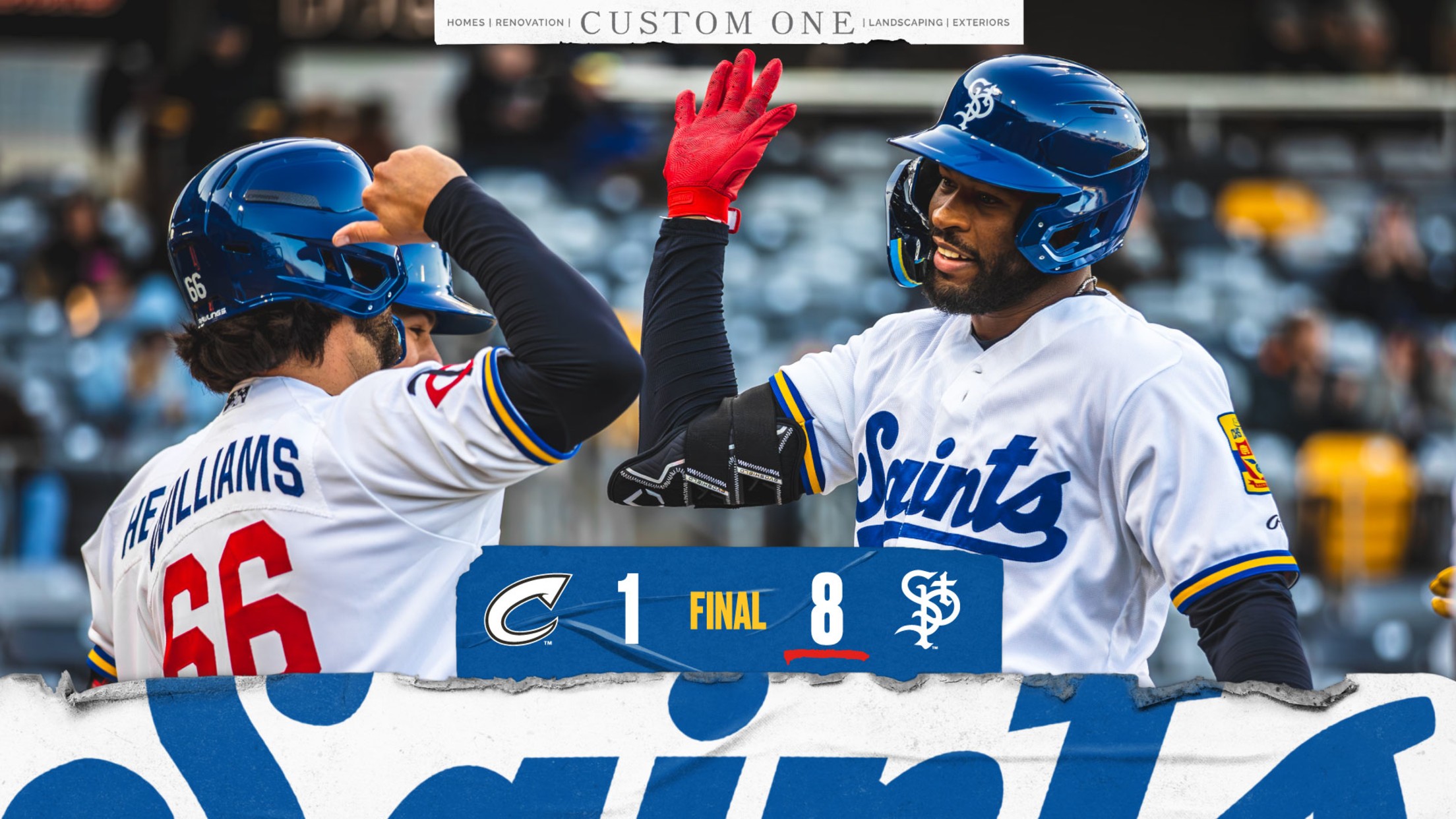 ST. PAUL, MN (March 30, 2024) - The St. Paul Saints home opener was moved from Friday to Saturday. Then, the Saturday game time was pushed back three hours to allow the field additional time to dry from the recent winter storm. None of that seemed to bother the Saints as the bottom of their order accounted for seven RBI, the lineup clubbed three home runs, and the arms struck out 13 while allowing just three hits in an 8-1 victory over the Columbus Clippers on Saturday night at CHS Field in front 4,052.