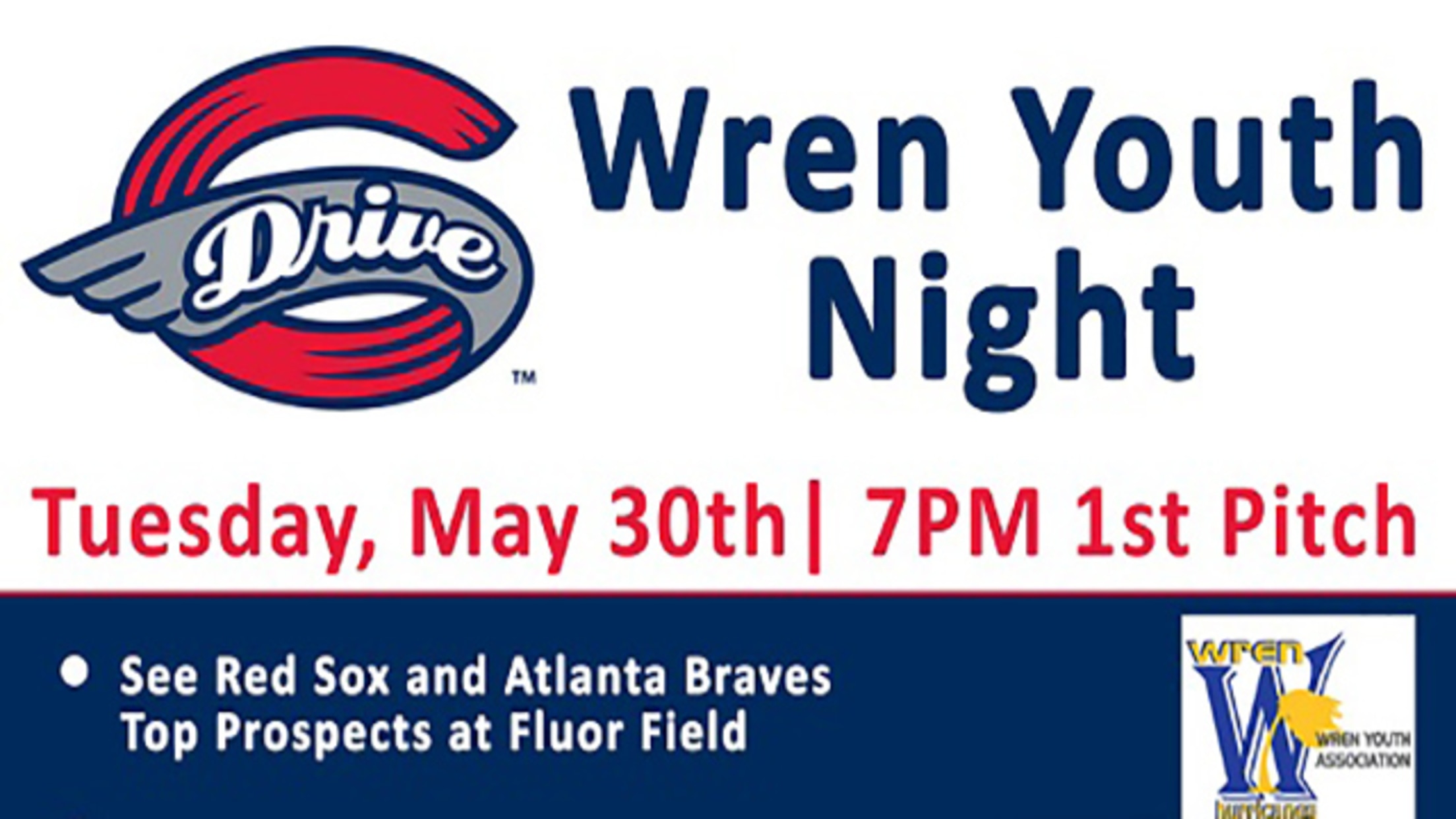 The Drive will host Wren Youth Association Night, and Little League teams from Wren Youth Association will be on hand for a fun evening, which includes a pregame parade around the warning track as well as fun in-game entertainment opportunities.