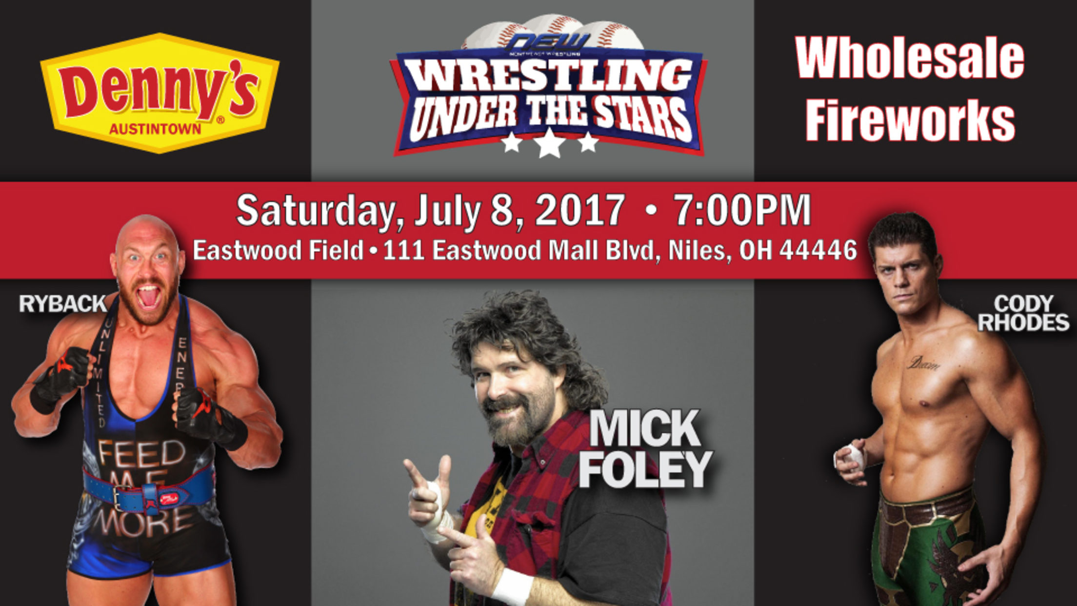 Wrestling Under the Stars Tickets On Sale NOW! at Eastwood Field on Saturday, July 8 March 3, 2017 Facebook Share X Share Email Copy Link [Empty Body] [Empty Body] Read More: Mahoning Valley Scrappers