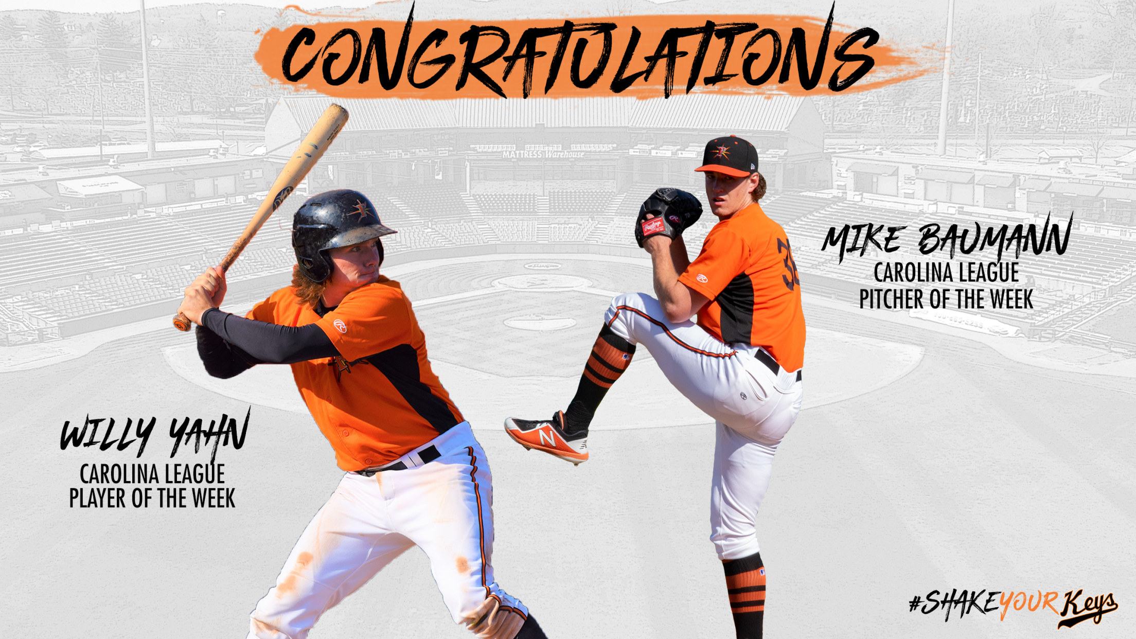 FREDERICK, MD-The Frederick Keys are excited to announce that infielder Willy Yahn and right-handed pitcher Mike Baumann have been named the Carolina League's Player of the Week and Pitcher of the Week respectively for April 29-May 5. It is the first time a Keys player has received a weekly honor
