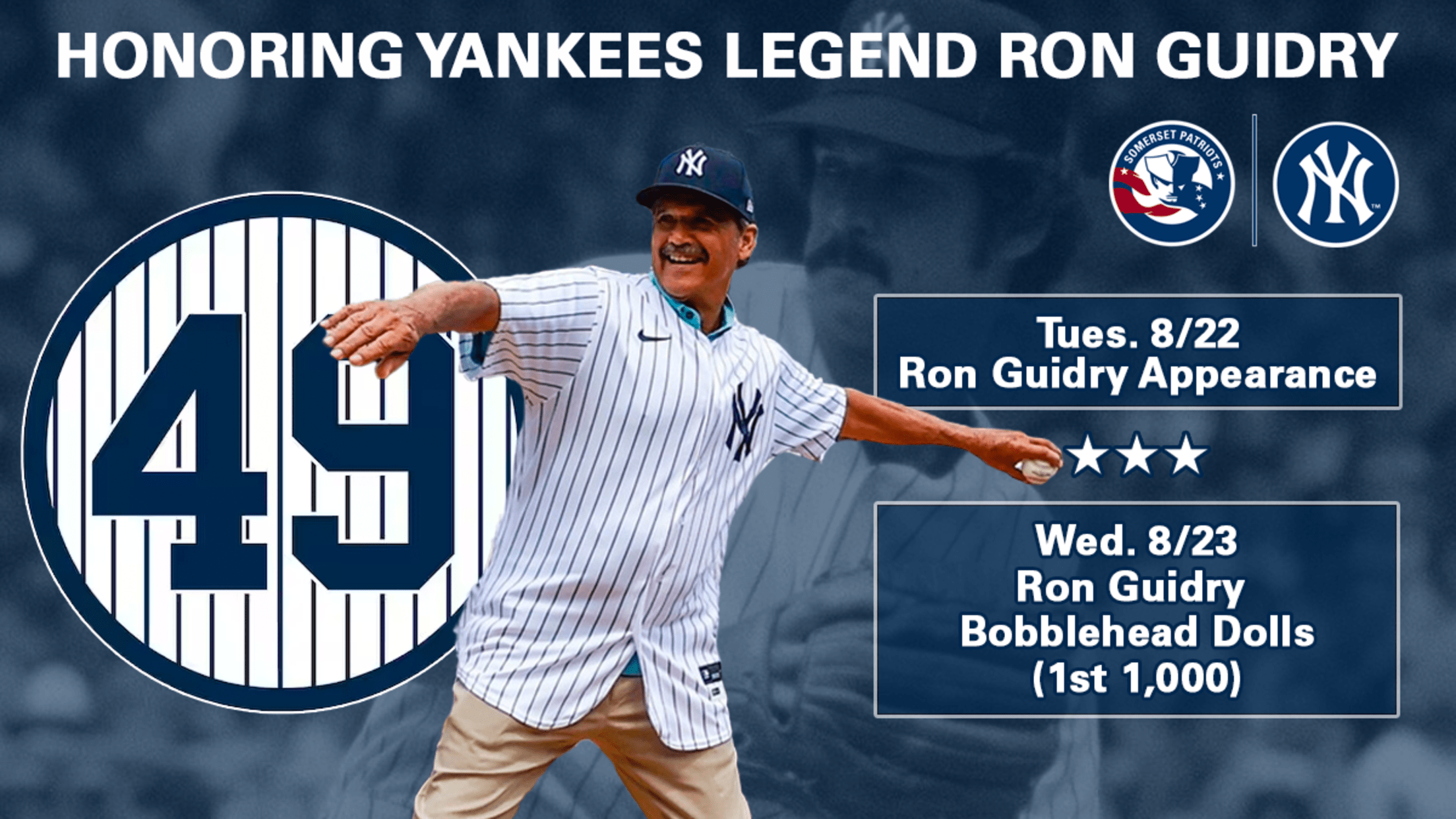 Bridgewater, New Jersey- The Somerset Patriots, the New York Yankees Double-A affiliate, will honor Ron Guidry at back-to-back games at TD Bank Ballpark during the 2023 season.