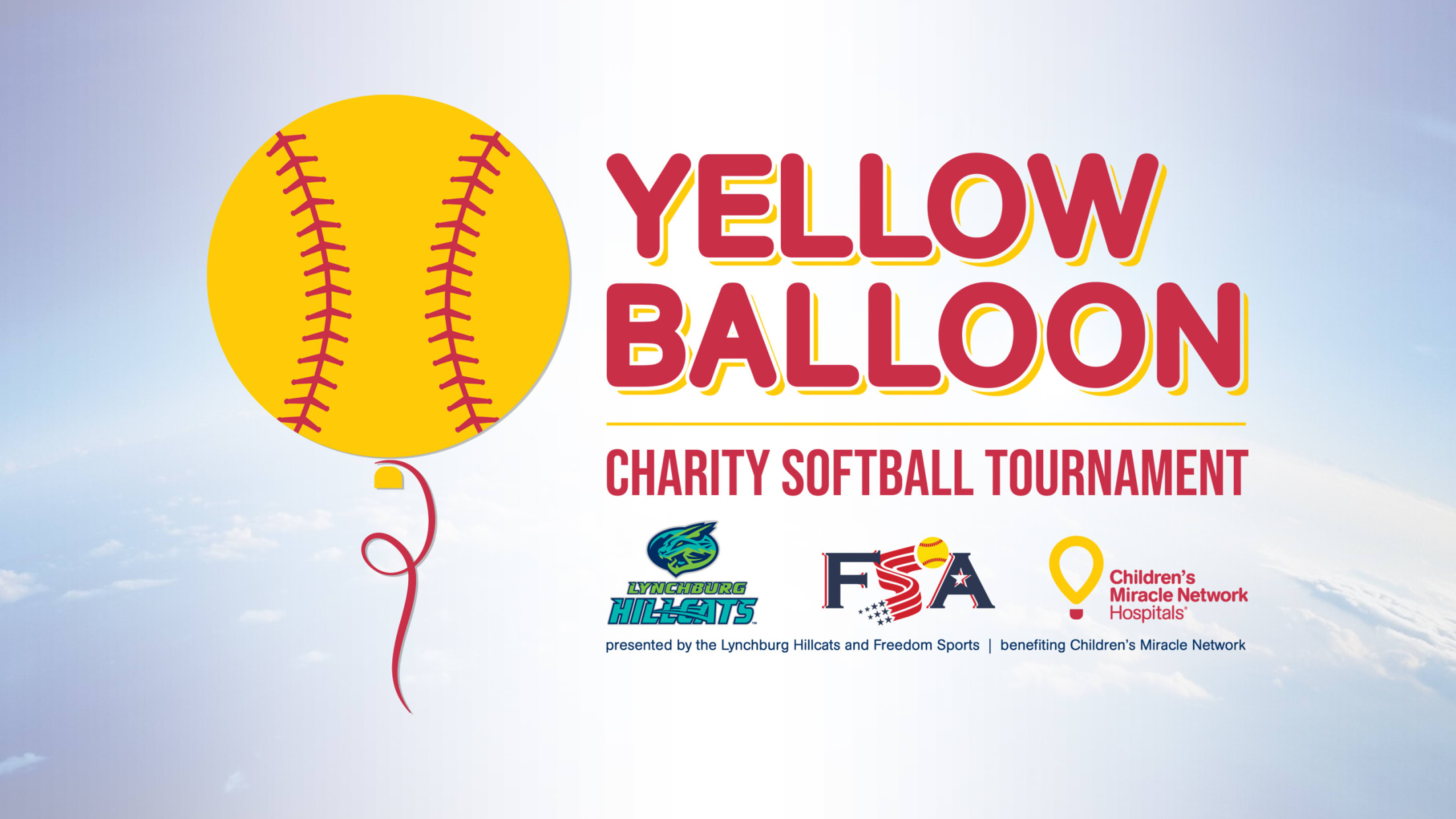 Lynchburg, Va.- The Lynchburg Hillcats are excited to announce the Yellow Balloon Charity Softball Tournament taking place Saturday, September 26, 2020 and Sunday, September 27, 2020. The Yellow Balloon Charity Softball Tournament is a collaborative effort between the Lynchburg Hillcats, Freedom Sports, and Children's Miracle Network. The tournament features 12