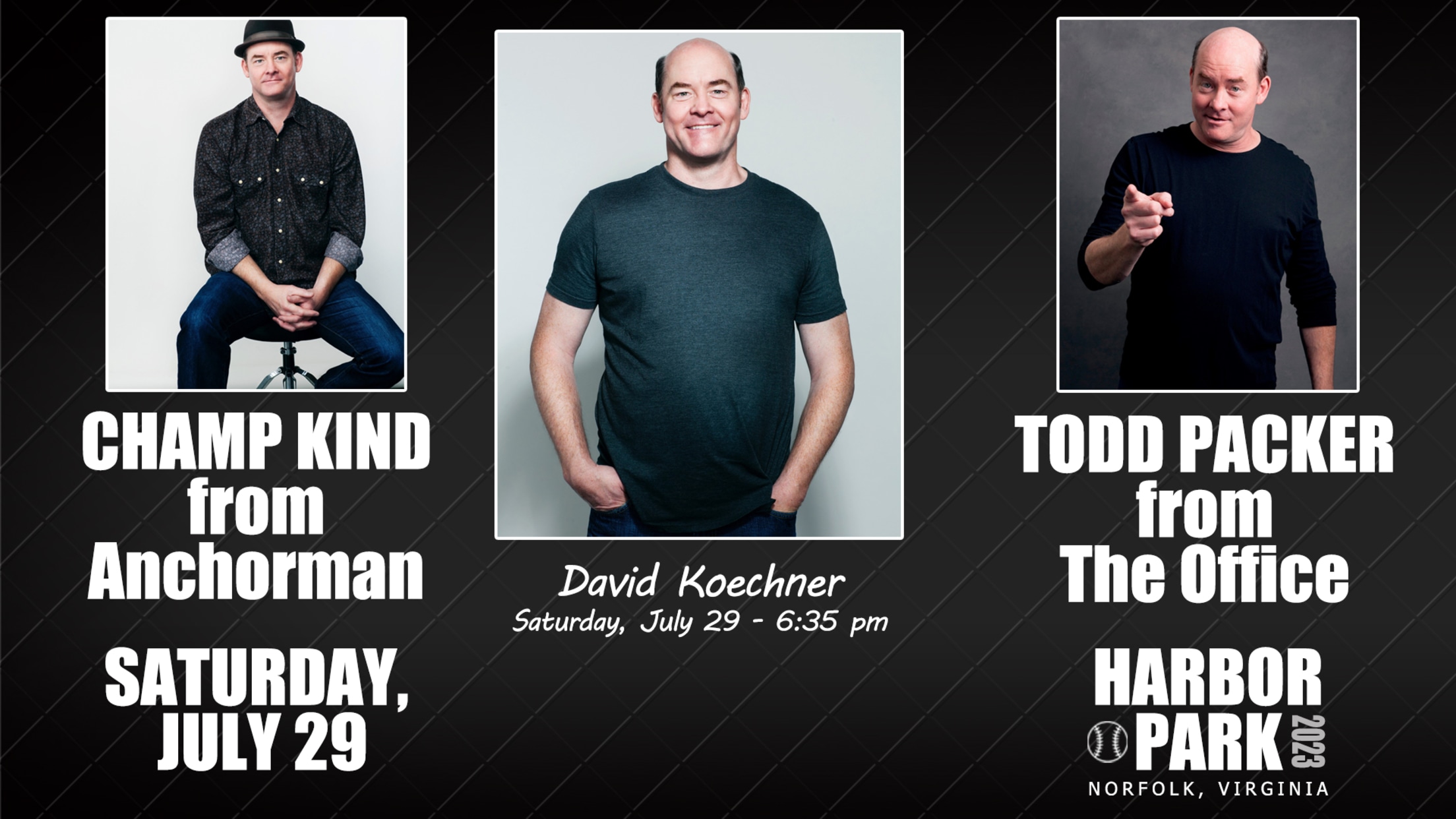 The Norfolk Tides announced today that David Koechner - who plays Champ Kind in Anchorman and Todd Packer in The Office among many other roles - will be at Harbor Park on Saturday, July 29th.