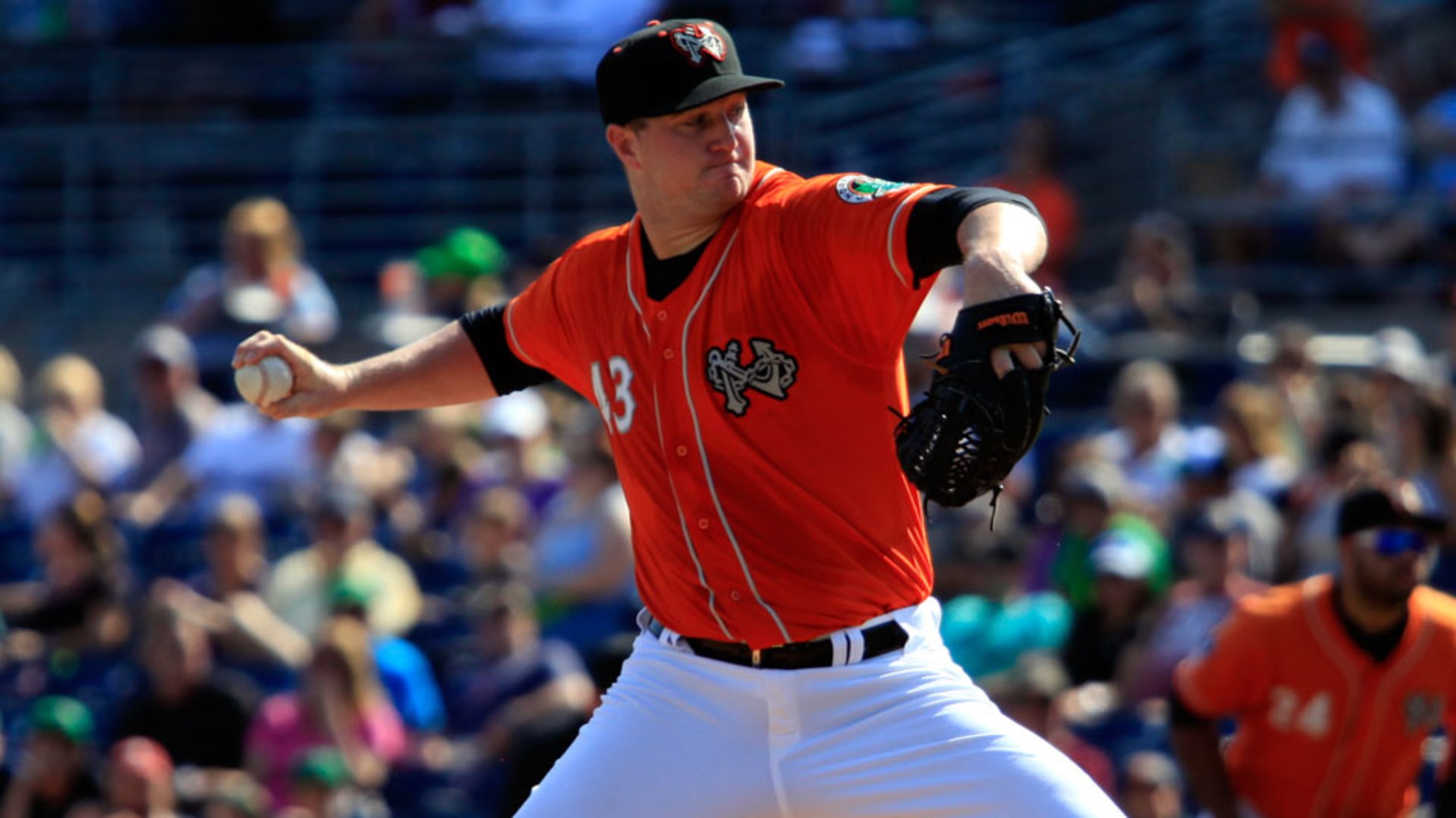 Mike Wright fired 4.2 shutout innings Sunday at Harbor Park. (Scott Sears/Norfolk Tides)