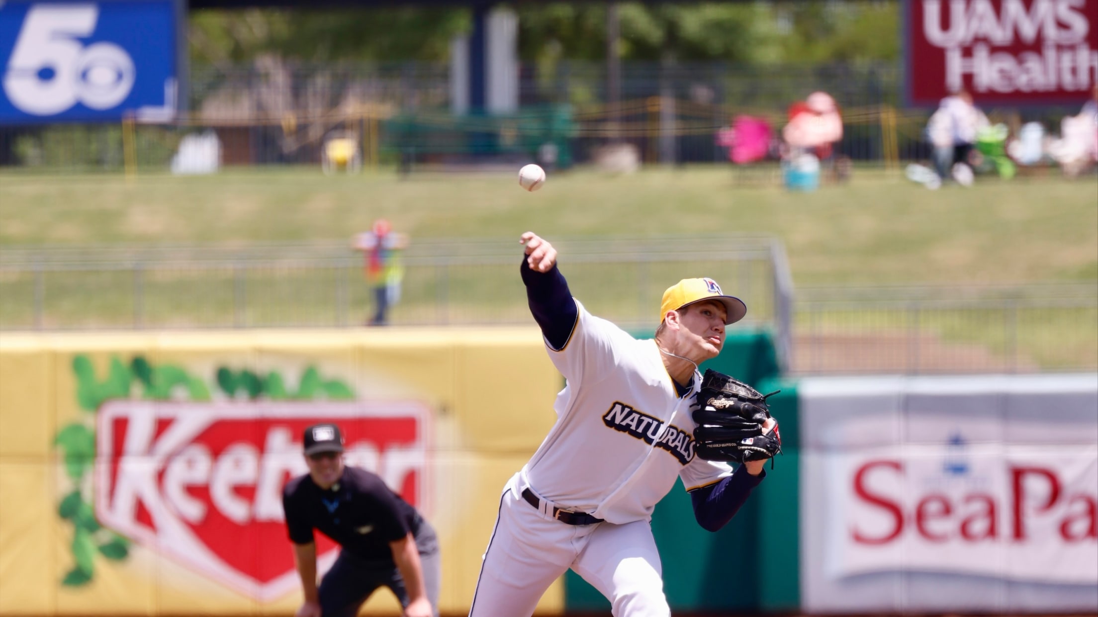SPRINGDALE, AR – Kansas City Royals’ number seven prospect, Ben Kudrna, went a career-long 7.0 shutout innings of work in the Northwest Arkansas Naturals (54-56, 21-20) 5-3 win over the Arkansas Travelers (55-55, 20-21). The two sides continue their series Thursday evening at Arvest Ballpark in Springdale, Arkansas, with a 7:05 PM CT first pitch.