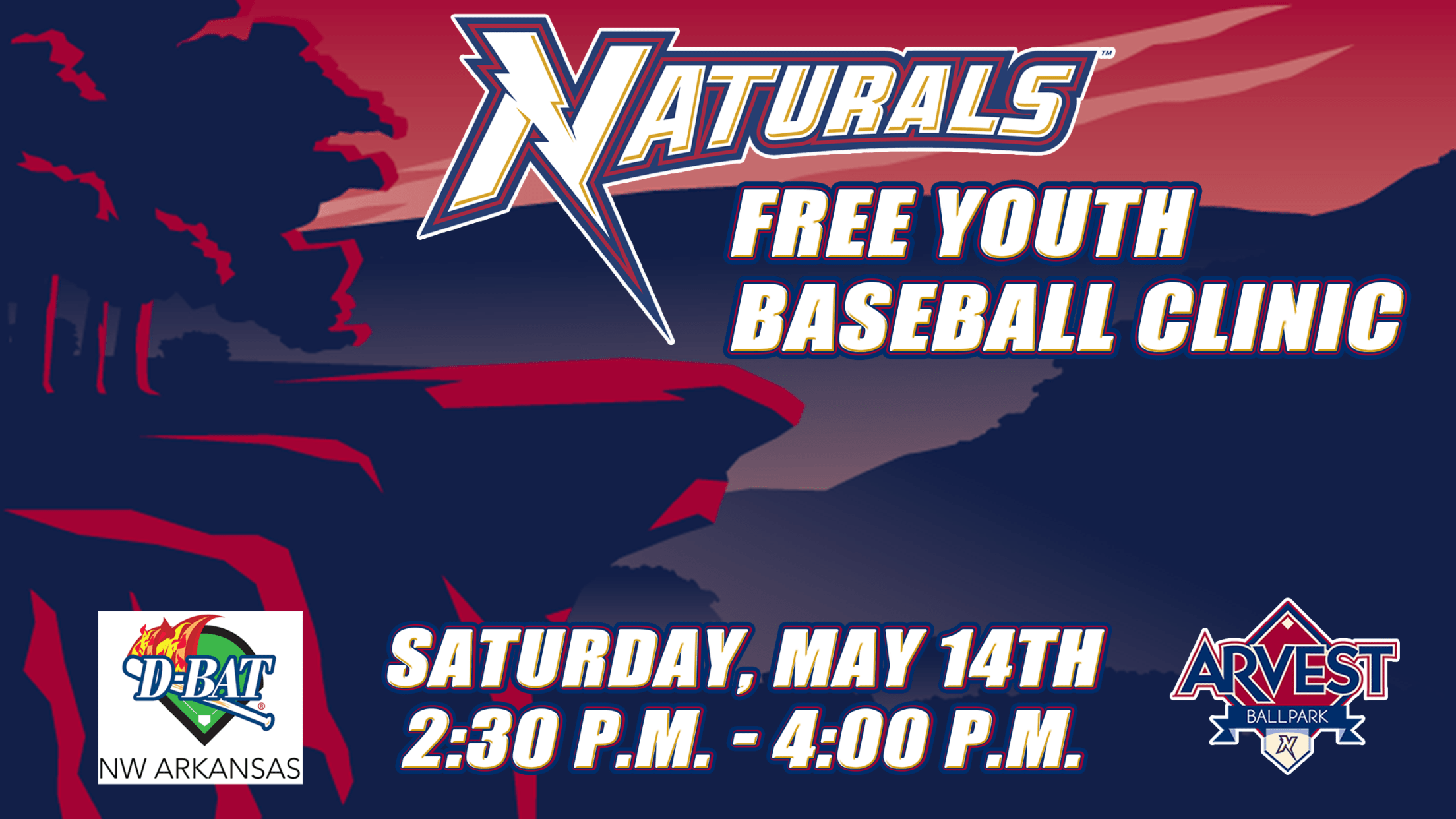 SPRINGDALE, Ark. – The Northwest Arkansas Naturals are excited to partner with D-BAT NW Arkansas to announce the return of the Naturals FREE Youth Baseball Clinic that will take place at Arvest Ballpark from 2:30 p.m. until 4:00 p.m. on Saturday, May 14 in advance of that night’s 6:05 p.m. game against the Wichita Wind Surge, the Double-A Minnesota Twins.