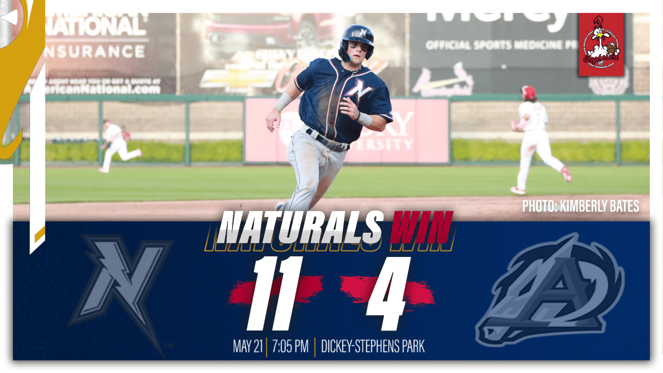 NATURALS EXPLODE FOR 11 RUNS IN RAIN-SHORTENED WIN OVER TRAVS