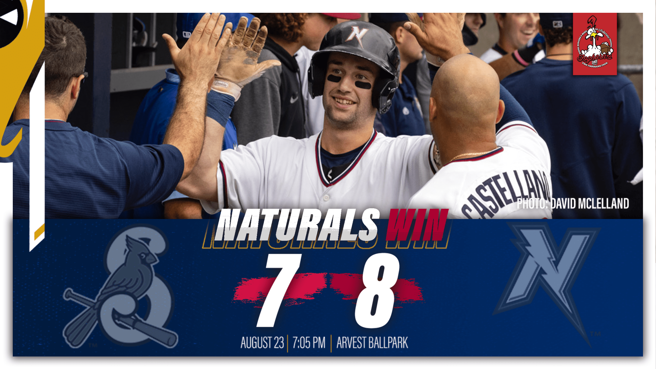 SPRINGDALE, AR – The Northwest Arkansas Naturals battled back-and-forth with the Springfield Cardinals but came out ahead in Tuesday’s series opener, with an 8-7 win at Arvest Ballpark.