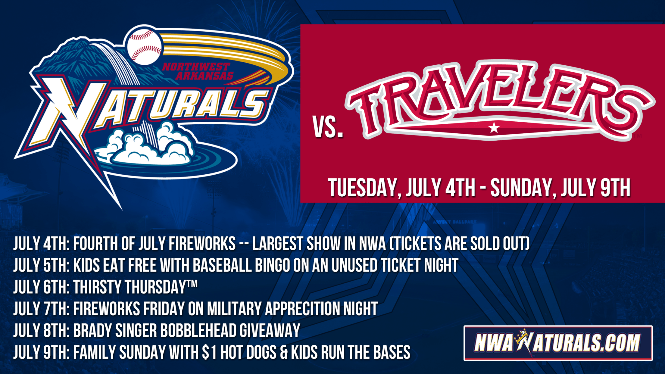 Wednesday, July 5 – Naturals vs. Arkansas Travelers, 7:05 P.M. (Gates at 6 P.M.)