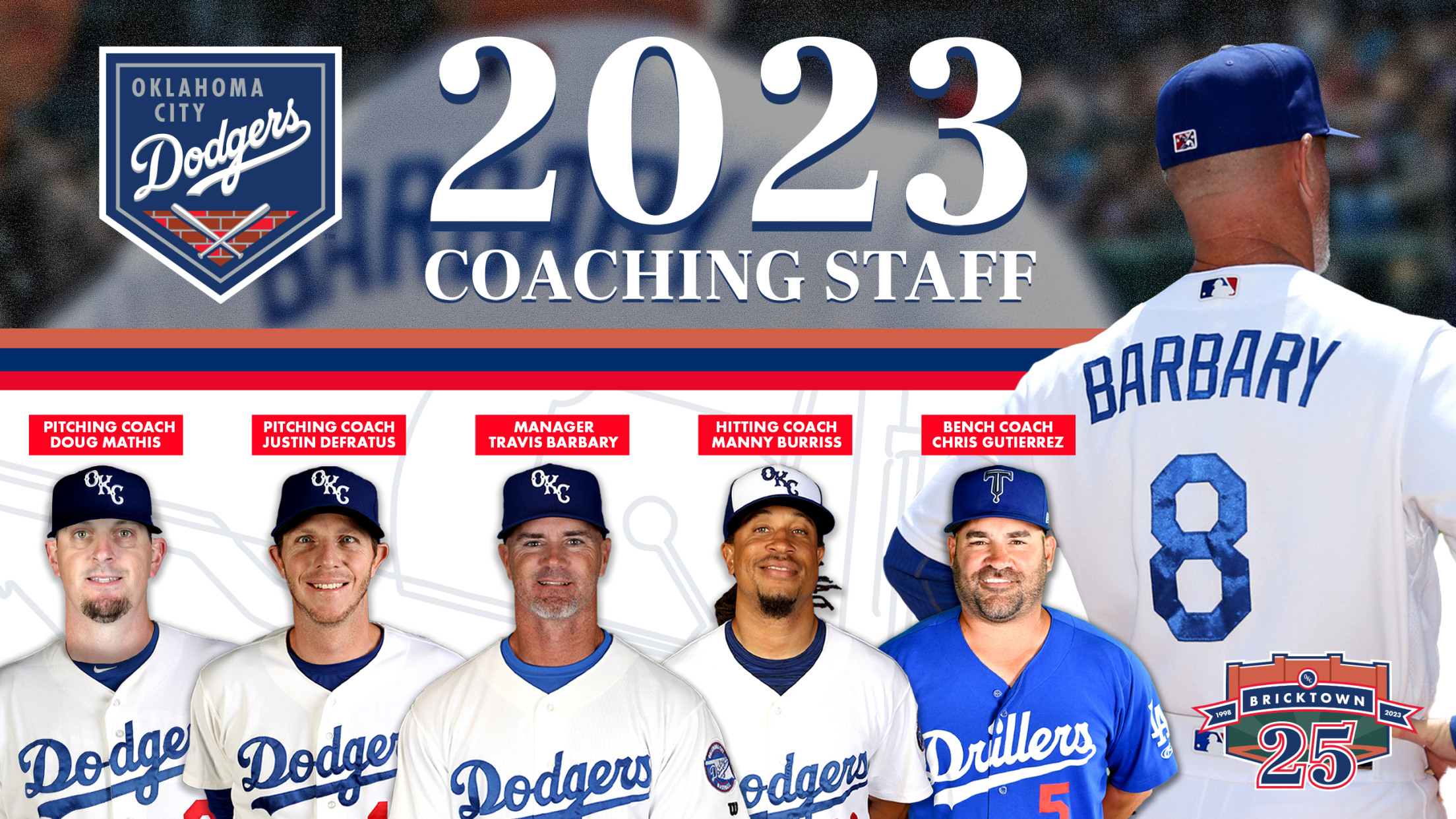 OKLAHOMA CITY – The Oklahoma City Dodgers, in conjunction with the Los Angeles Dodgers, have announced the 2023 OKC Dodgers field staff, led by manager Travis Barbary. Hitting coach Manny Burriss returns for a third season, and he’ll be joined by pitching coaches Doug Mathis and Justin DeFratus. Mathis begins
