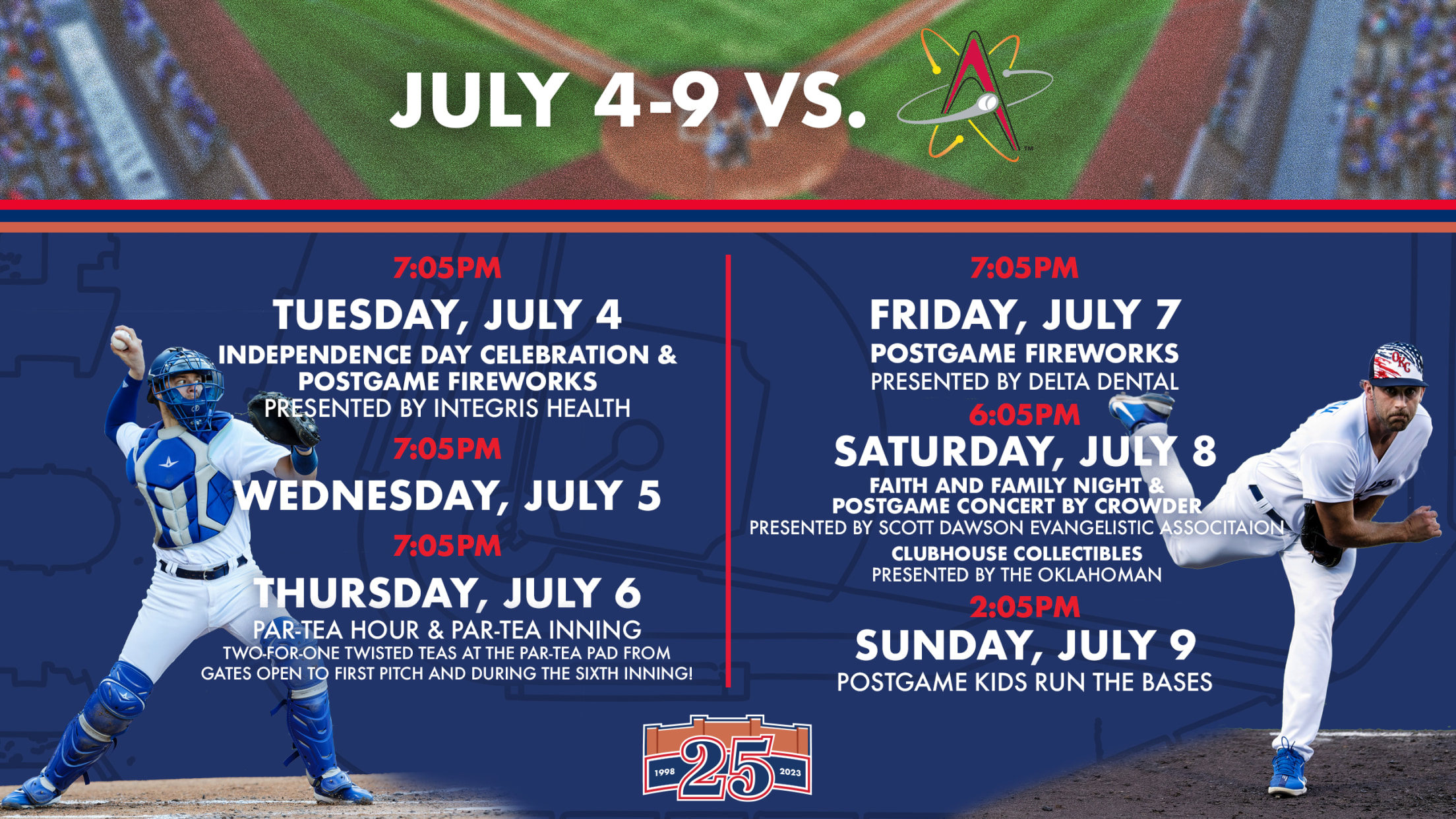 OKLAHOMA CITY – Join the Oklahoma City Dodgers to celebrate Independence Day Tuesday at Chickasaw Bricktown Ballpark as the Dodgers open a six-game home series against the Albuquerque Isotopes at 7:05 p.m.
