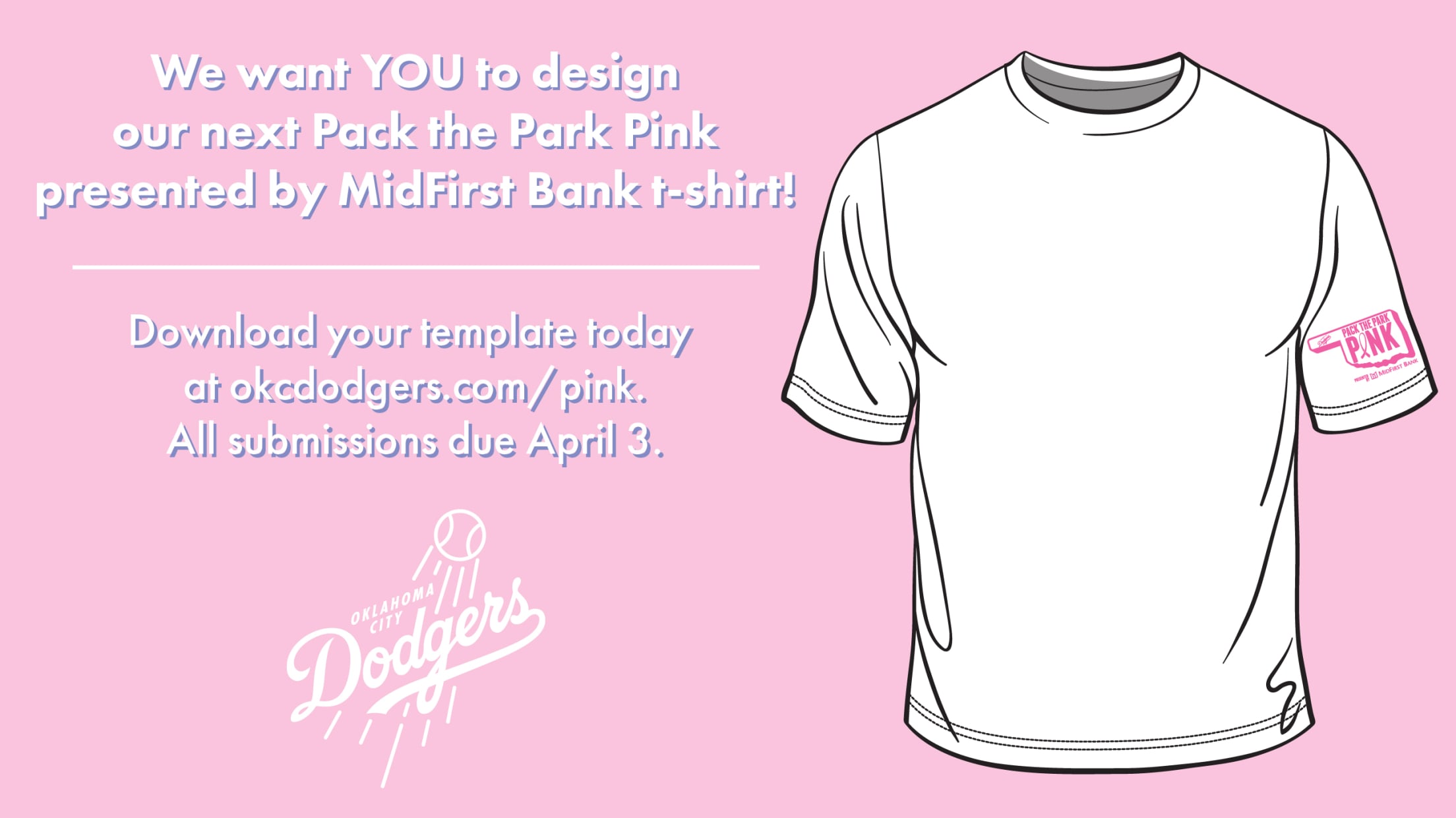 OKLAHOMA CITY - The Oklahoma City Dodgers and MidFirst Bank are calling for submissions to design this season's "Pack the Park Pink" T-shirt.