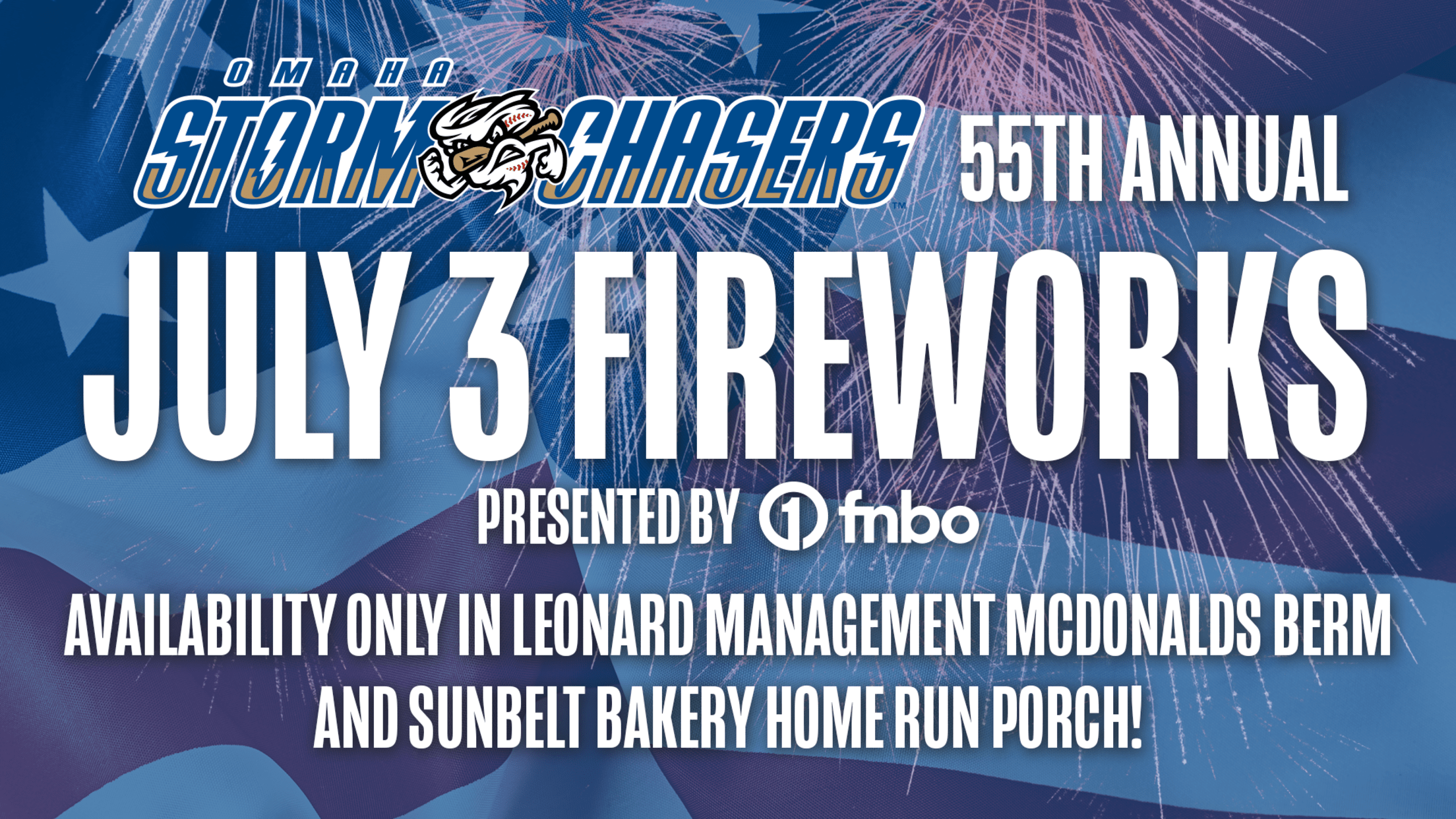PAPILLION, NE —All fixed seats have are now sold out for the Omaha Storm Chasers home game scheduled for 7:05 p.m. on Monday, July 3rd. The only seats still available are those in the Sunbelt Bakery Home Run Porch and the general admission seats on the Leonard Management McDonald's Berm.