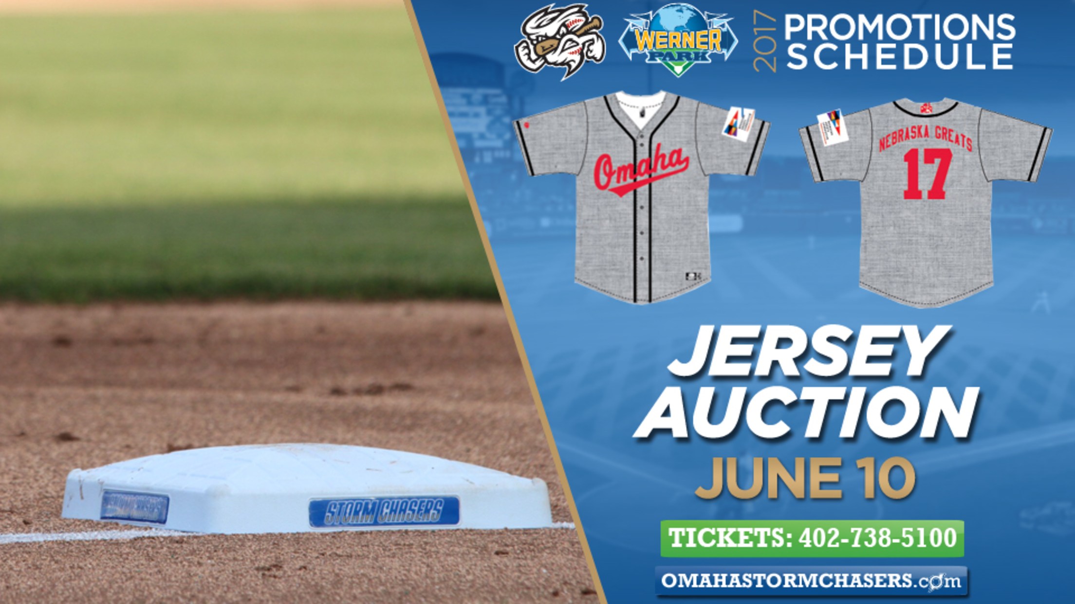 The Omaha Storm Chasers are the Triple-A affiliate of the Kansas City Royals and play at Werner Park in Papillion, Sarpy County, Nebraska. For more information please visit www.omahastormchasers.com and follow us on Twitter @OmaStormChasers and "like" us at www.facebook.com/omahastormchasers.