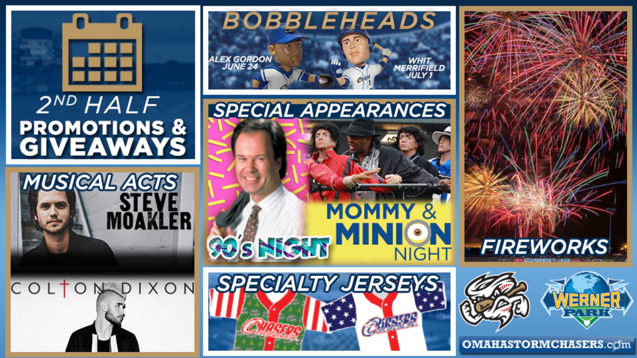 As summer dawns in the Omaha Metro, promotions are heating up at Werner Park as the Storm Chasers prepare for the second half of their 2017 campaign at Werner Park. Among the many sensational events planned at Werner Park are exhilarating post-game fireworks extravaganzas, familiar celebrity appearances, fan-tastic giveaways and
