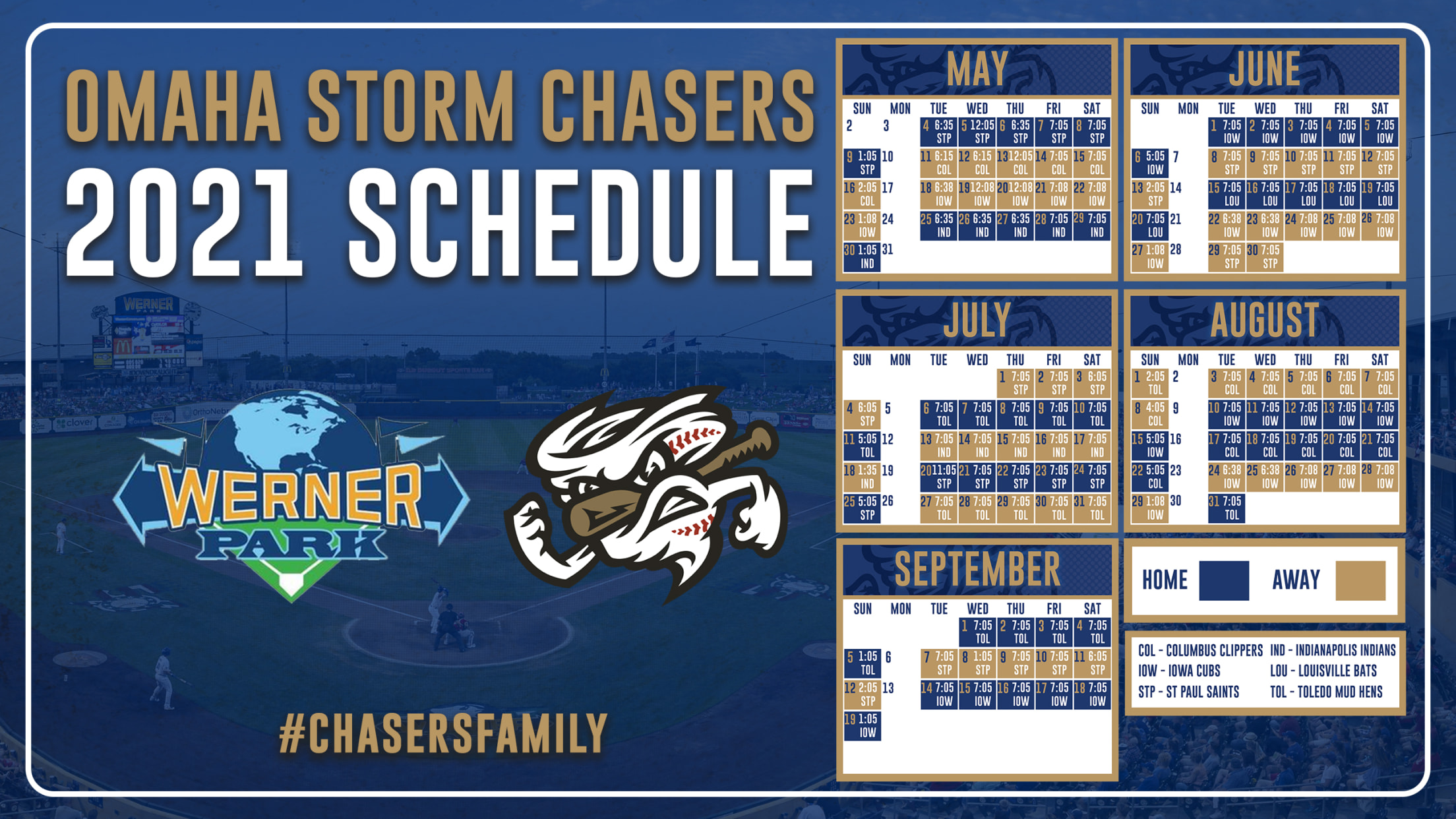 The 2021 Triple-A season, which was previously scheduled to begin for the Omaha Storm Chasers on April 6 at Toledo (DET), is now set to begin on May 4, when the Chasers are scheduled to welcome the St. Paul Saints (MIN) to Werner Park. Click here to view the updated 2021 schedule.