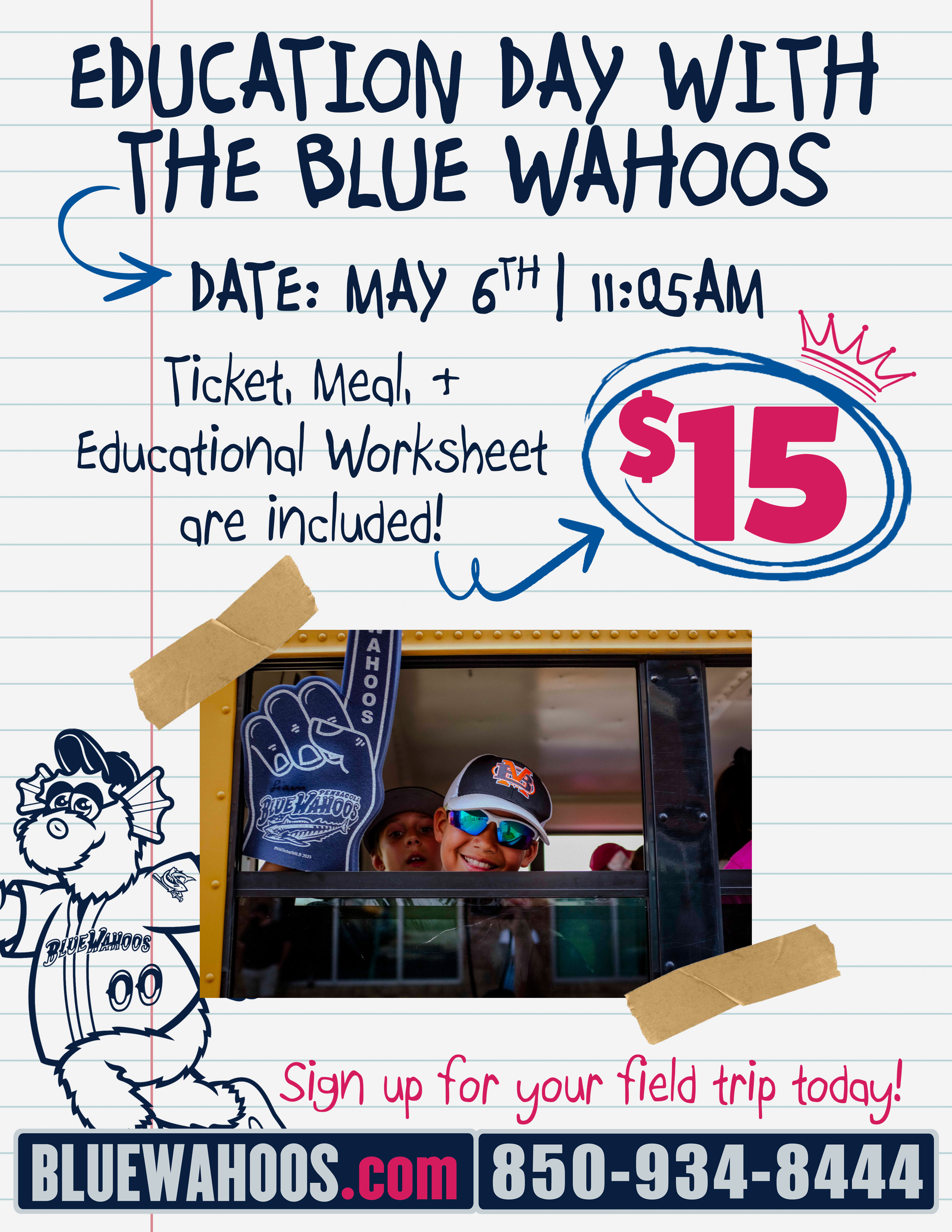 Bring your class and join the Blue Wahoos for a fun-filled, educational day of learning at Blue Wahoos Stadium at Pensacola's annual Education Day game in 2026! On Wednesday, May 6th, the Blue Wahoos will play a special 11:05 AM game in front of a packed crowd of local school students!