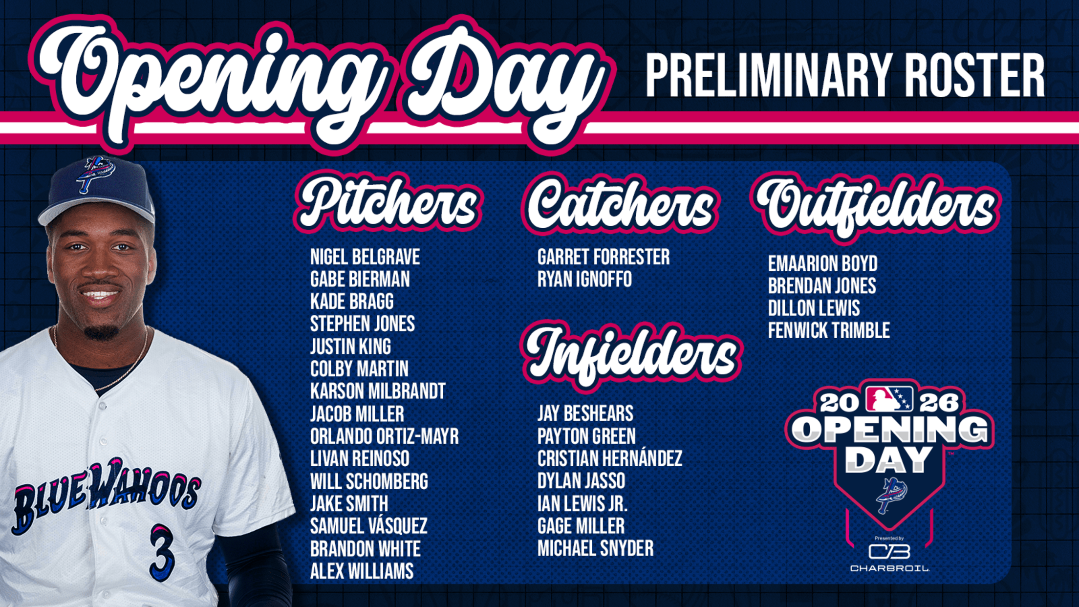 PENSACOLA, FL – The Pensacola Blue Wahoos announced Thursday their preliminary Opening Day roster in advance of the 2026 season.